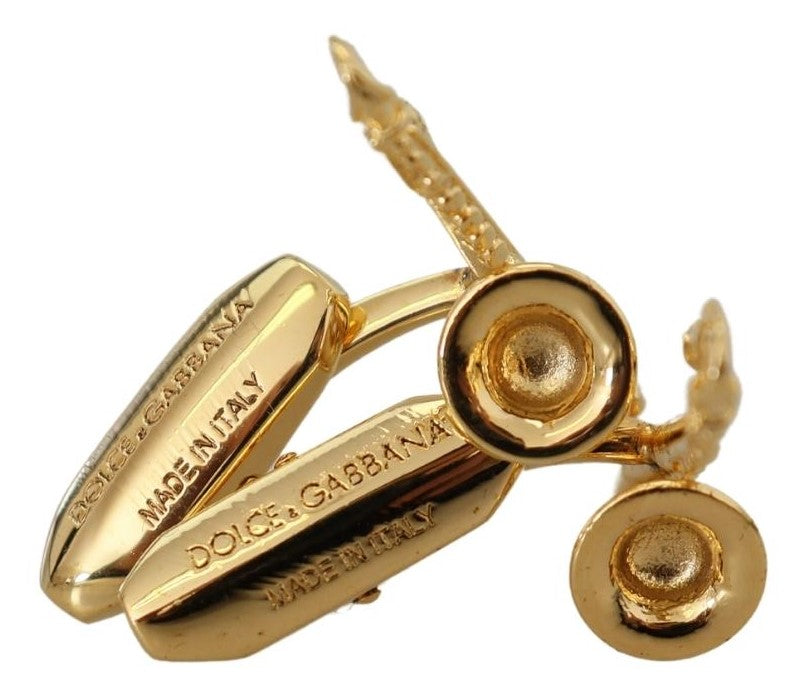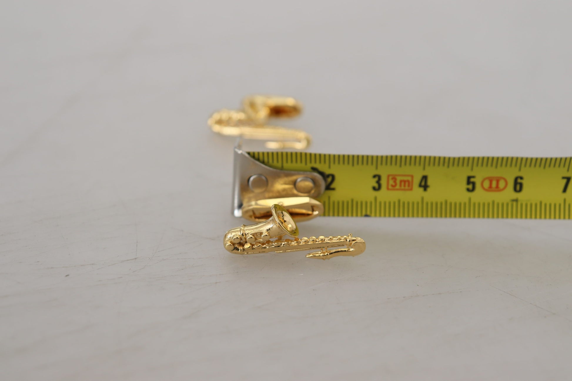 Embrace the epitome of Italian elegance with these stunning gold-plated cufflinks from Dolce & Gabbana’s exclusive MainLine collection. Perfect for adding a touch of luxury to any gentleman’s attire, these cufflinks are meticulously crafted from high-quality brass, sporting the shape of a trumpet. Their dazzling gold color ensures that they will stand out at any formal event, making them a must-have accessory for those who appreciate the finer things in life.