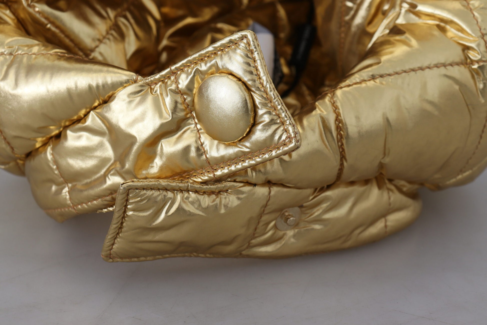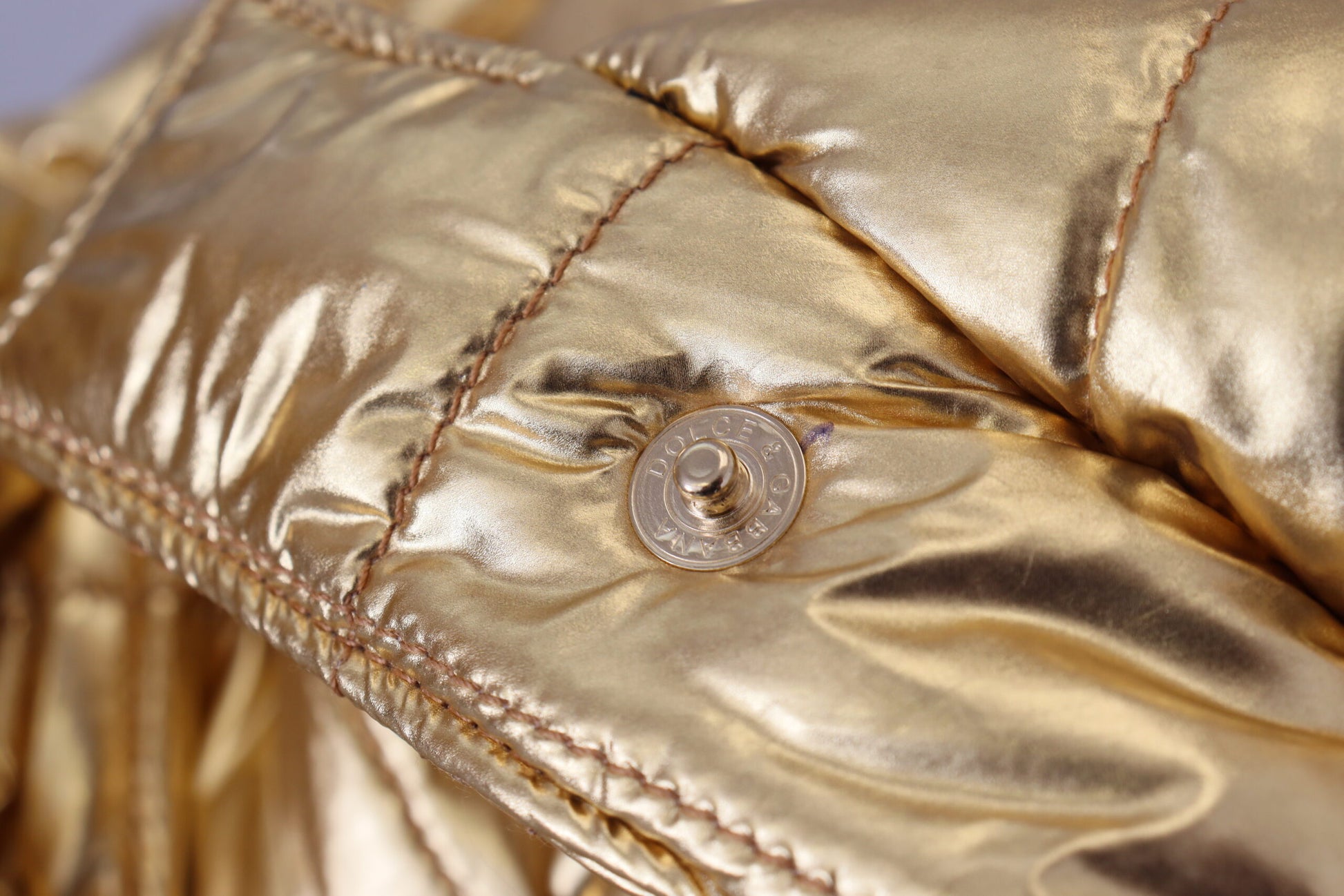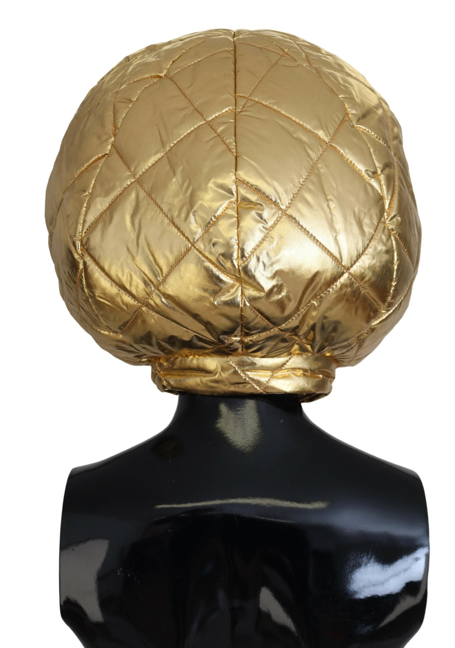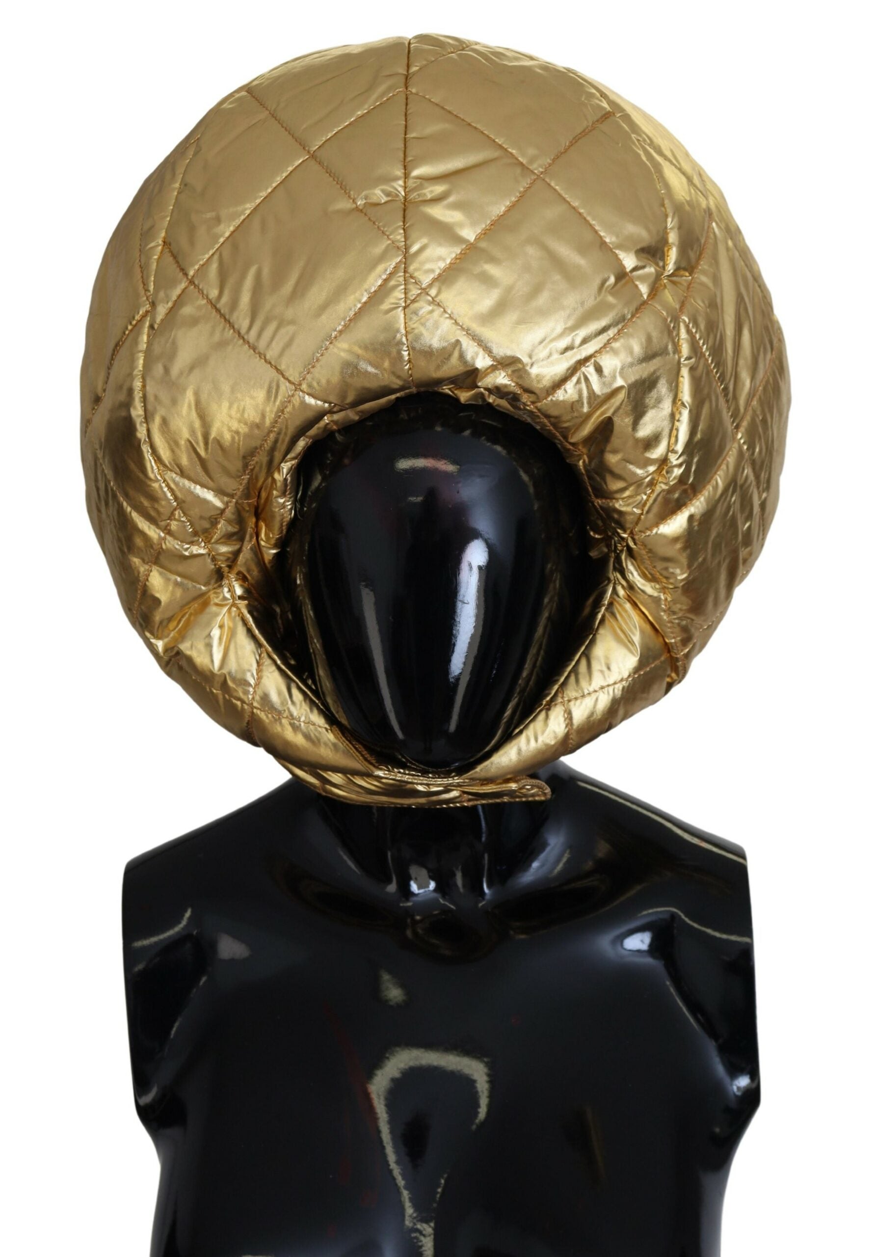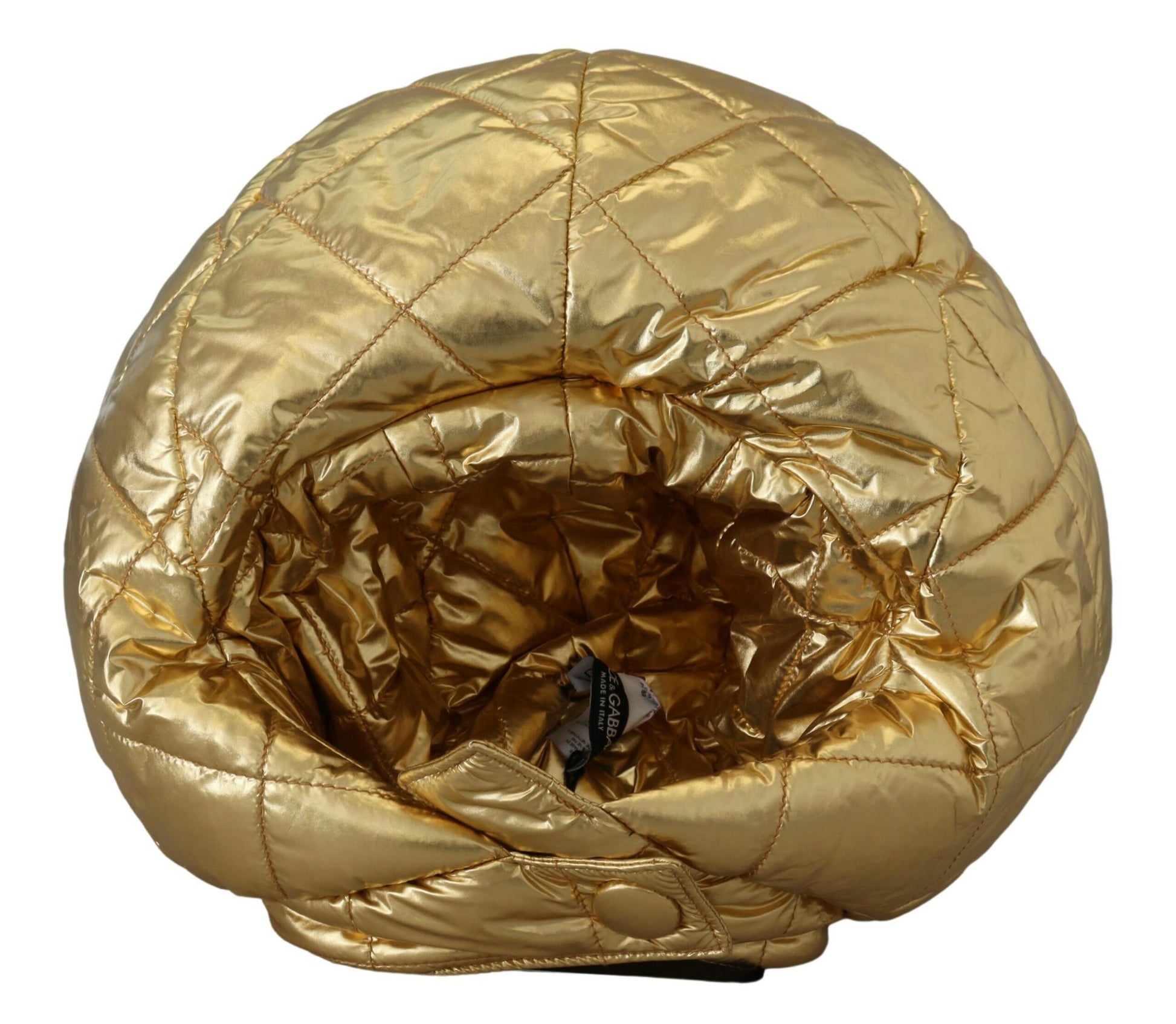 Step out in unparalleled style with this stunning Gold Puffer Windproof Hat from the exclusive MainLine collection by Dolce & Gabbana. Perfect for making a fashion statement while staying cozy, this brand new, authentic hat is a must-have accessory for those who appreciate luxury and sophistication. Don’t miss out on the chance to add this piece of Italian craftsmanship to your wardrobe.