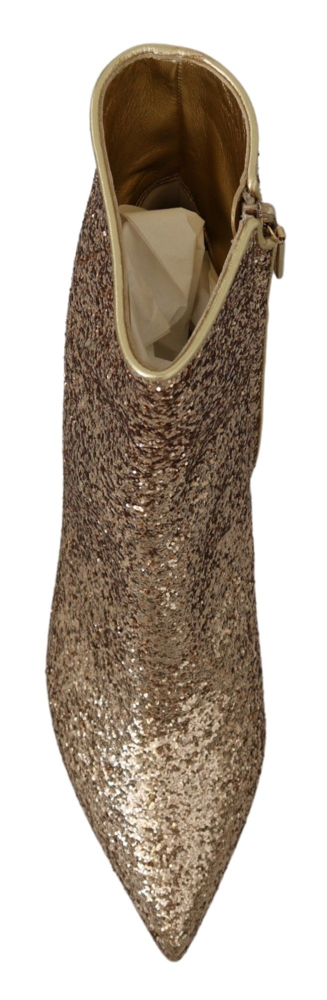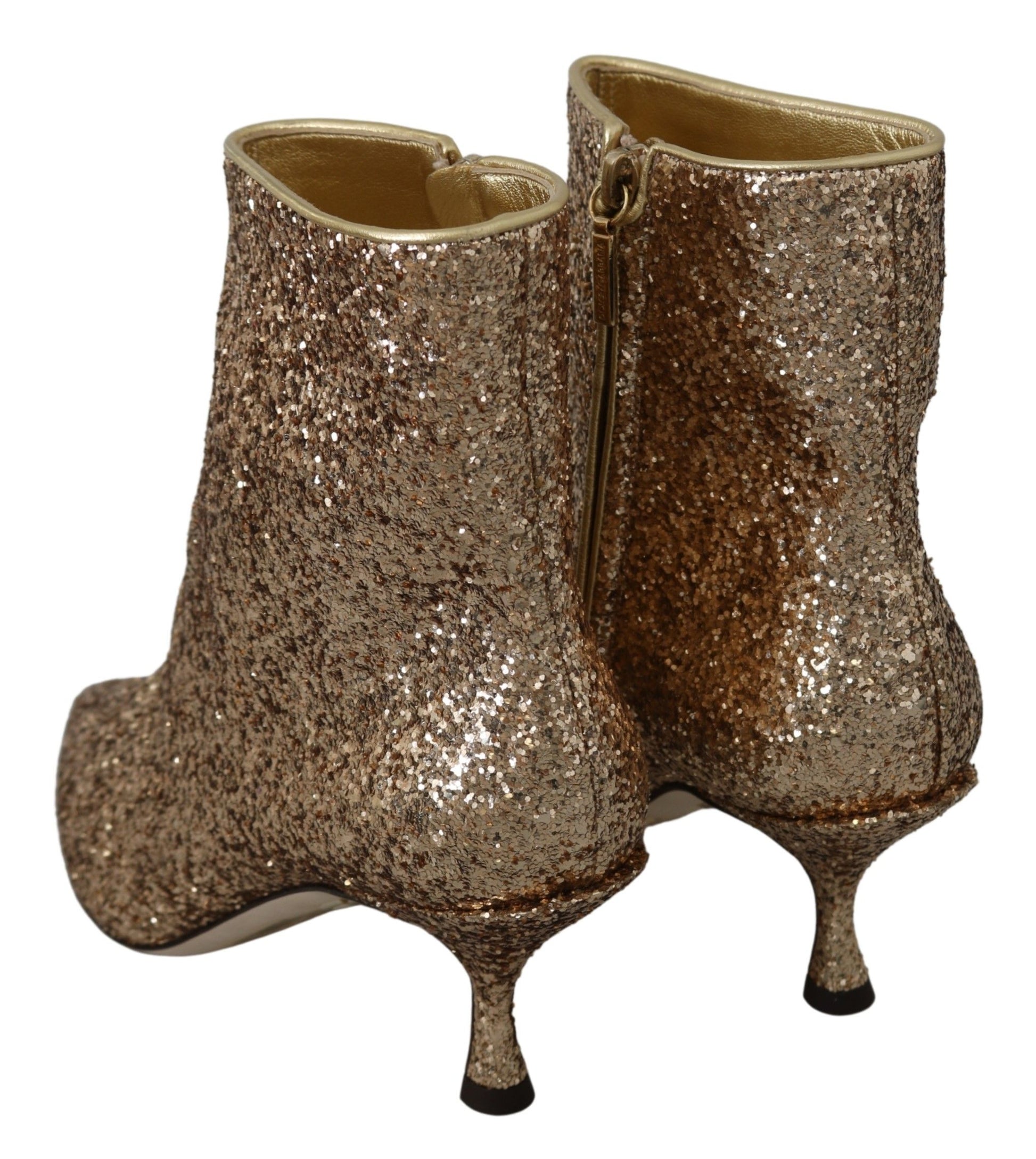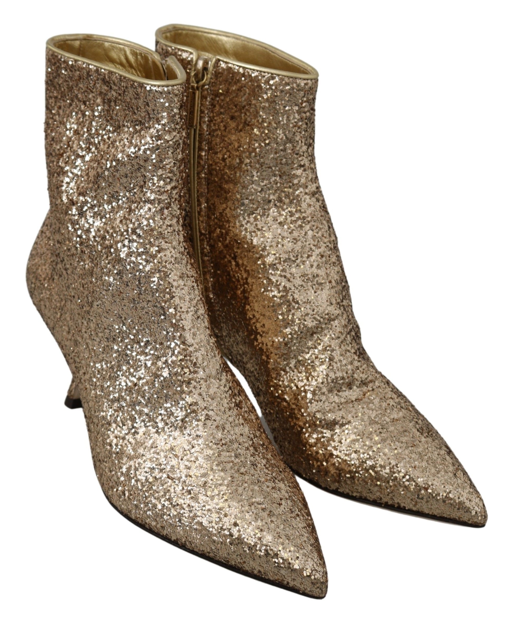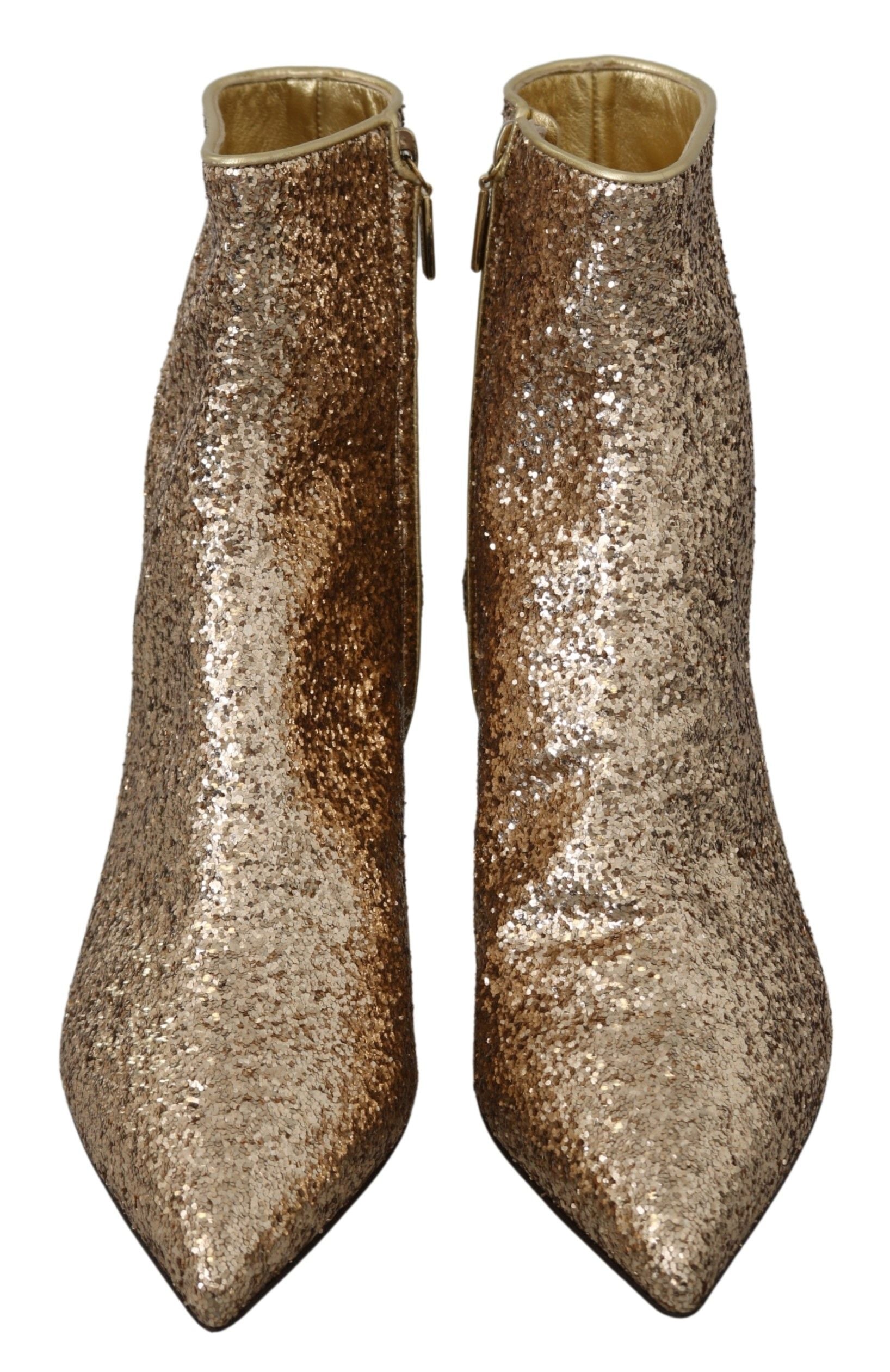 Step into luxury and shine with these stunning Dolce & Gabbana gold sequined leather boots. Perfect for those who dare to stand out, these boots boast impeccable Italian craftsmanship and offer both dazzling style and supreme comfort. Elevate your shoe game with this eye-catching essential.