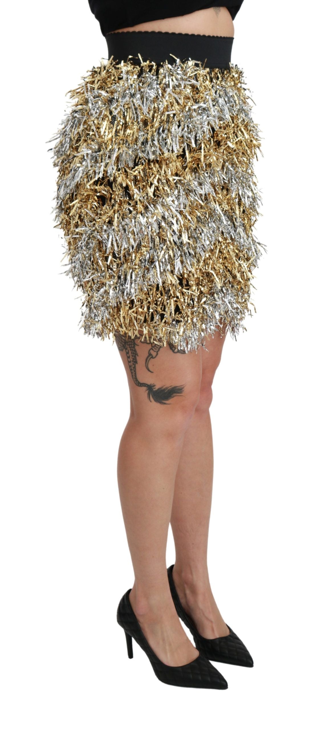 Infuse your wardrobe with a touch of Italian luxury with this Dolce & Gabbana embellished mini skirt. This statement piece is perfect for an opulent evening out or an upscale brunch. With its shimmering metallic hues, impeccable craftsmanship, and coveted high-waist design, you’ll capture everyone’s attention wherever you go. Proudly made in Italy, it exemplifies the brand’s commitment to exquisite tailoring and style.