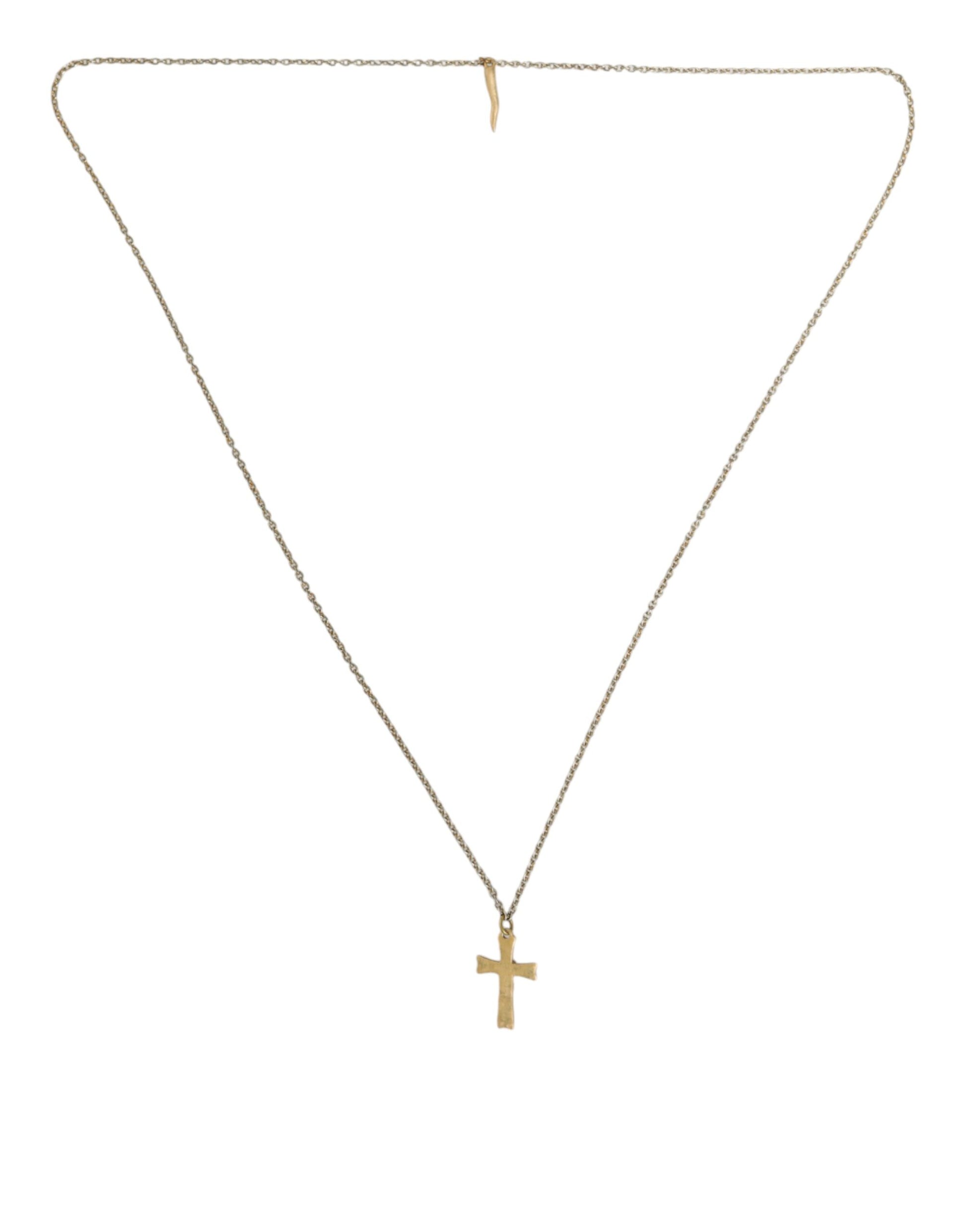 Gold Tone Brass Chain Cross Pendant Jewelry Necklace