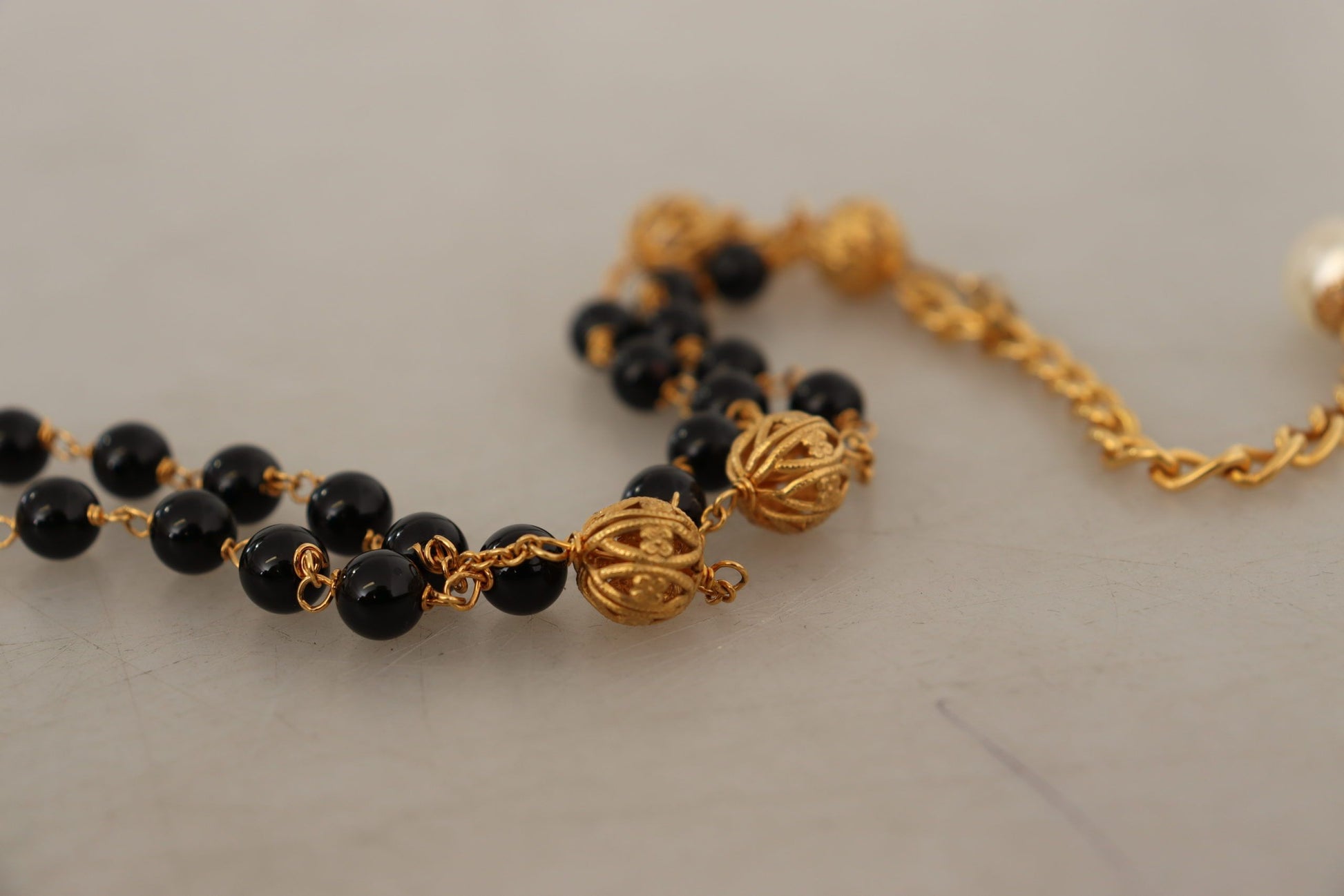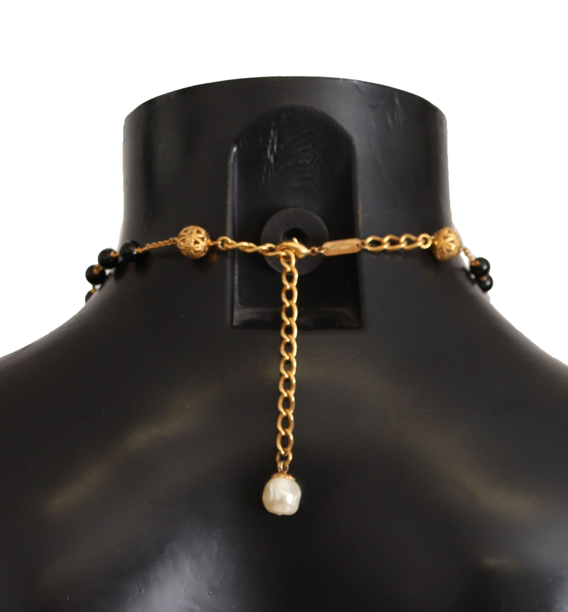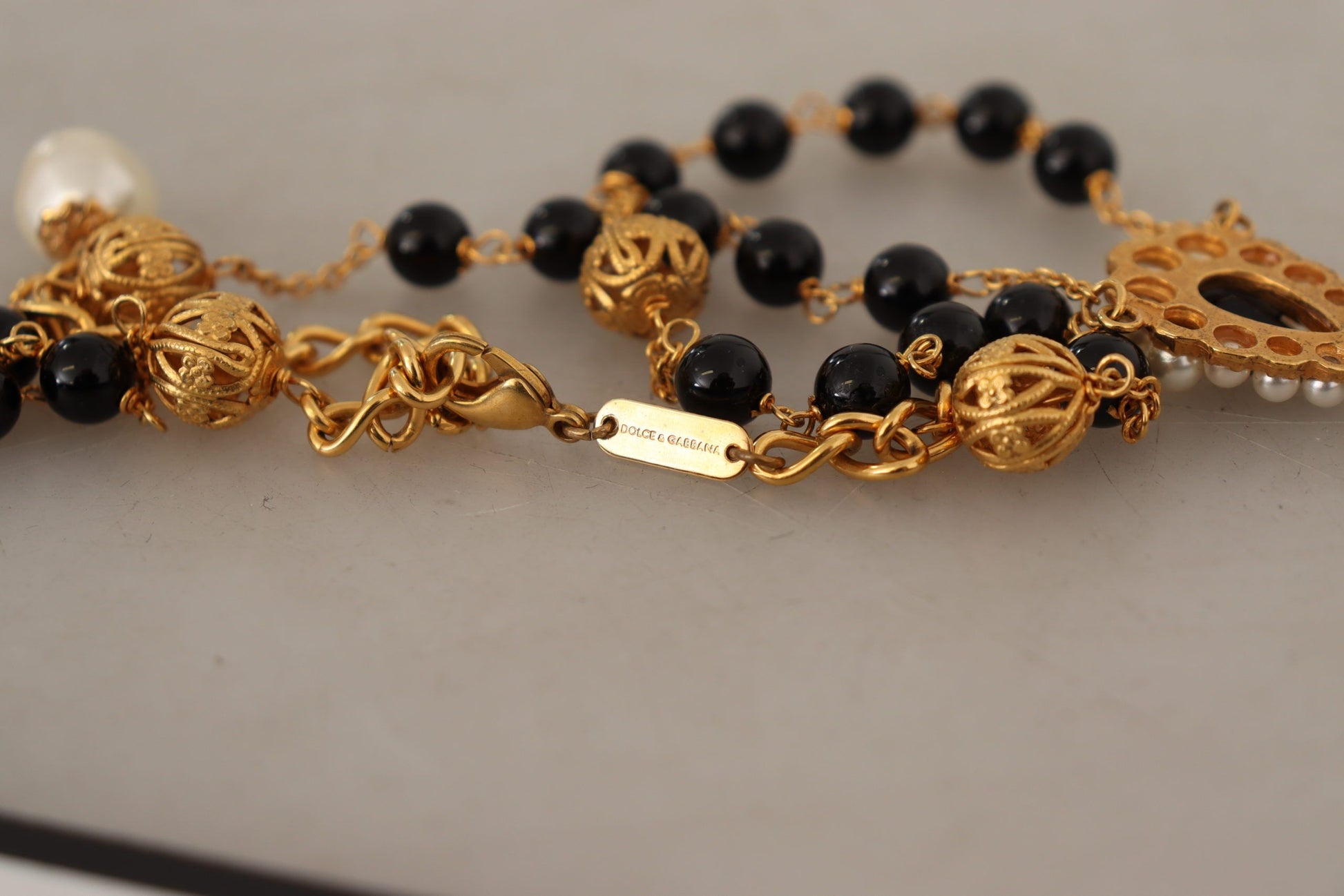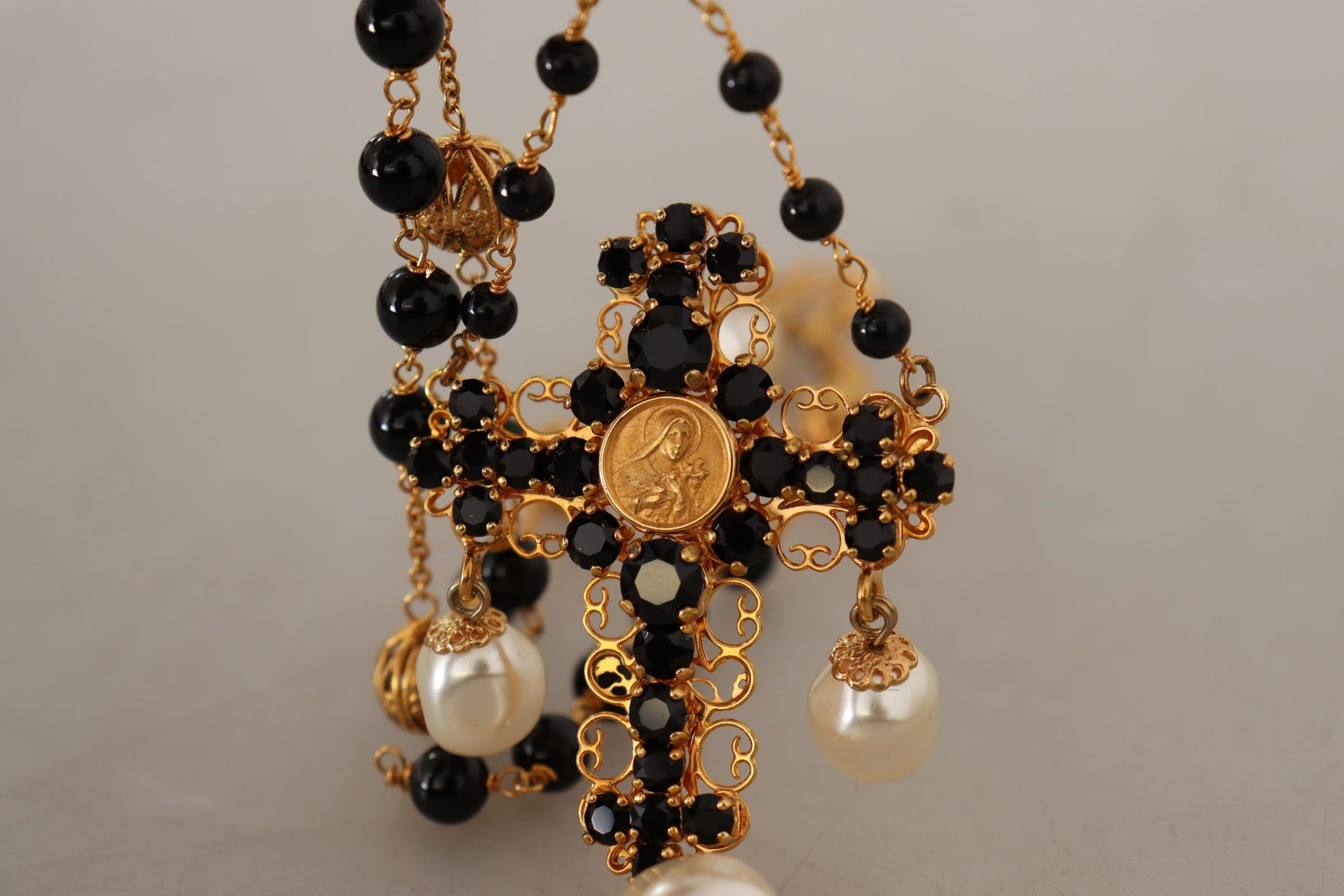 Adorn your neckline with the exquisite allure of this Gorgeous, brand new Charm Cross necklace. A luxurious addition to any ensemble, crafted with sparkling black crystals embedded in a lustrous gold-tone brass setting. This finely made piece by Dolce & Gabbana brings an aura of sophistication to your jewelry collection. It fastens securely with a lobster clasp, ensuring both comfort and style. Proudly made in Italy, this necklace exudes the elegance and craftsmanship synonymous with the Dolce & Gabbana brand.