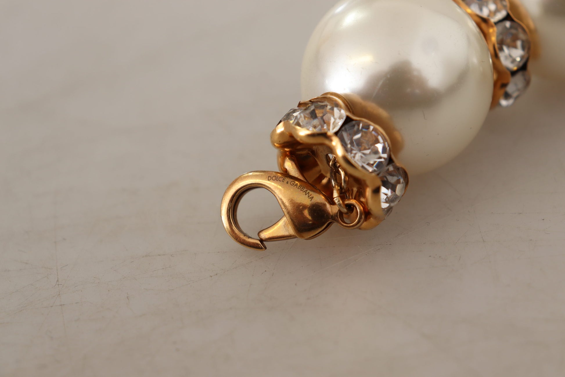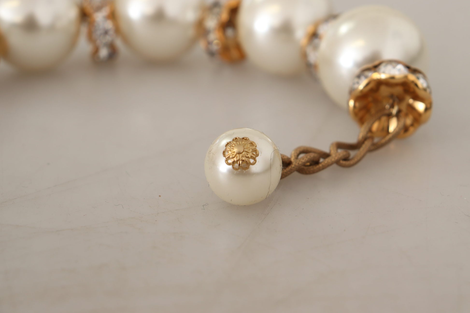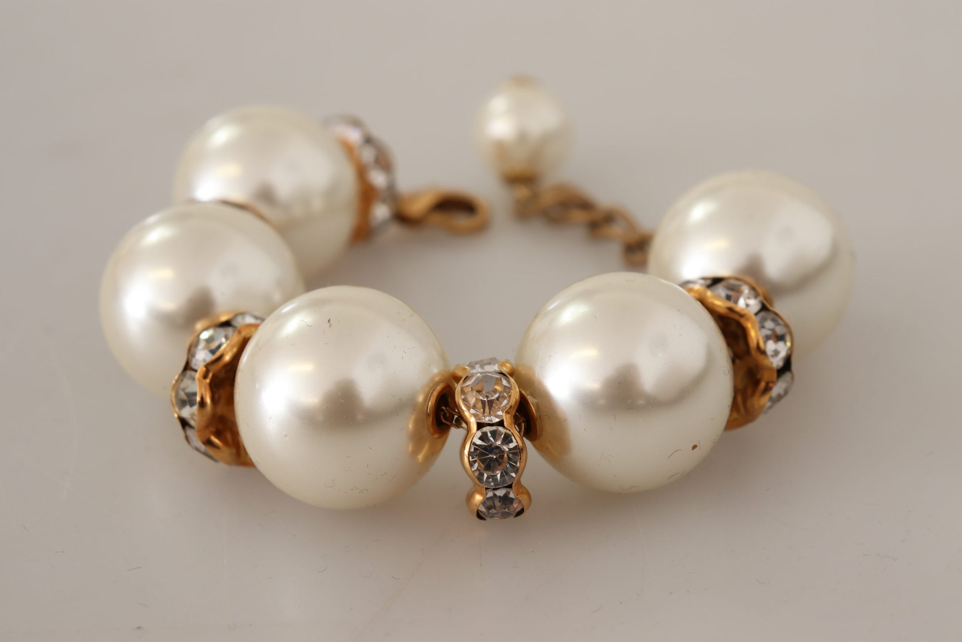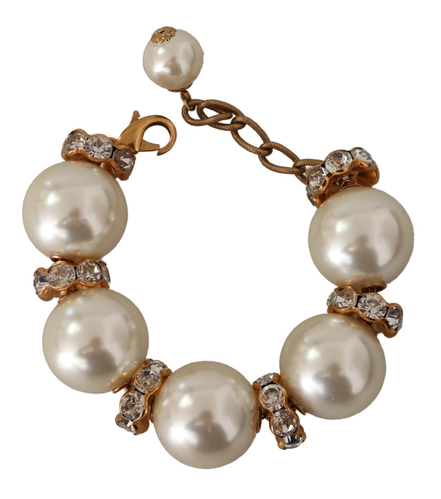 Exude elegance with this opulent Dolce & Gabbana bracelet, featuring a lavish display of crystal embellishments and majestic pearls. This gold-tone brass accessory promises enduring shine and sophistication. Perfect for the discerning woman who desires a touch of luxury in her ensemble.
