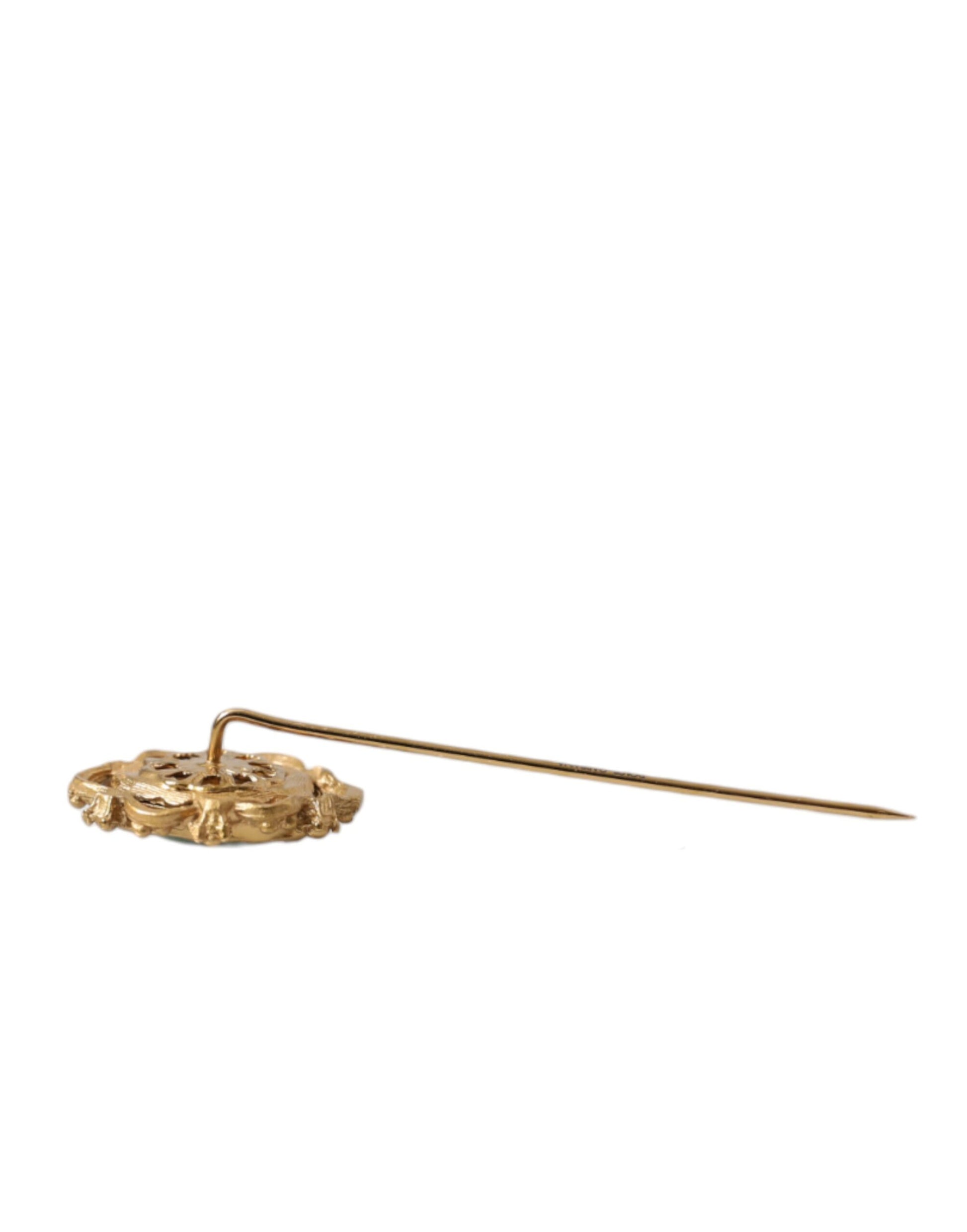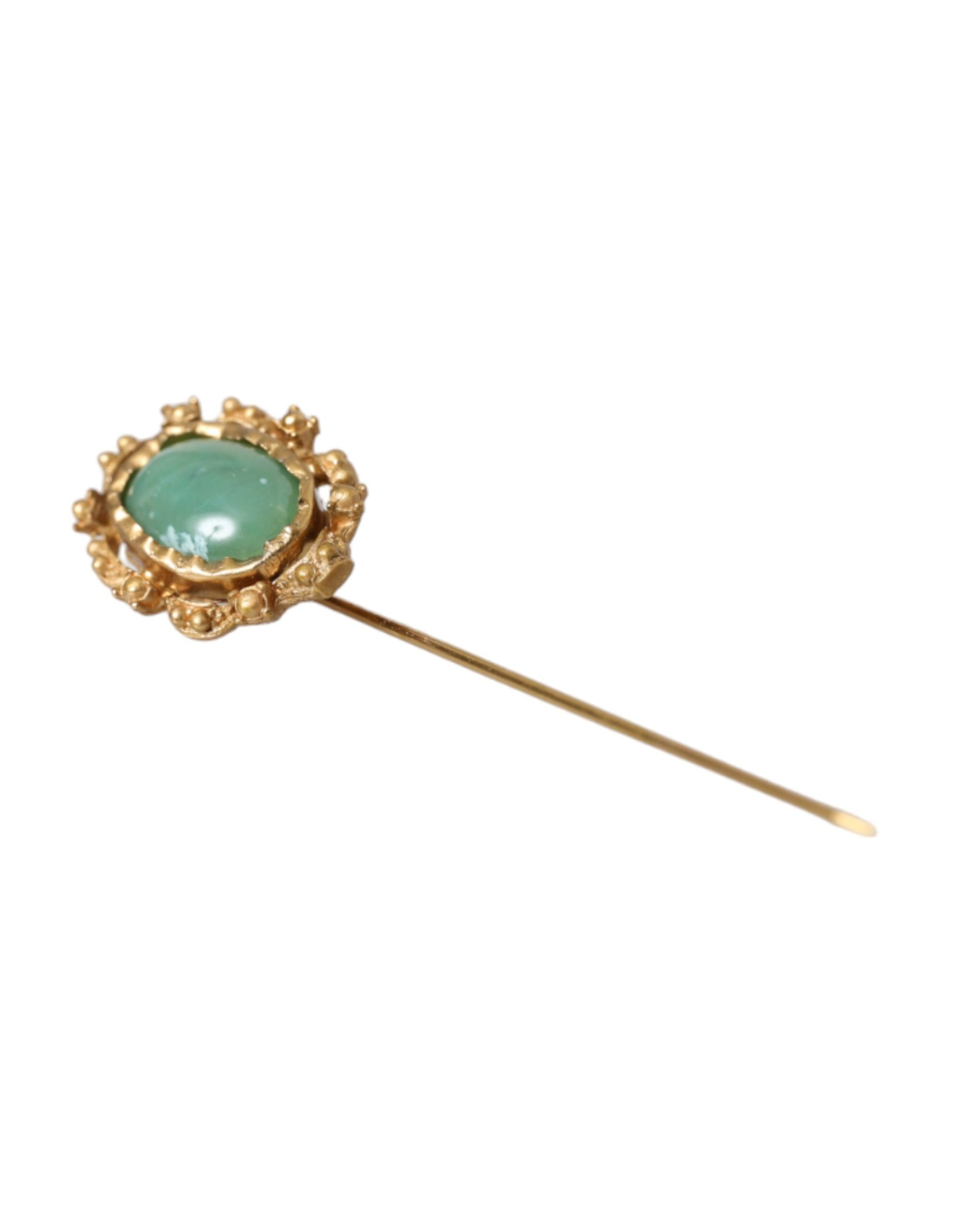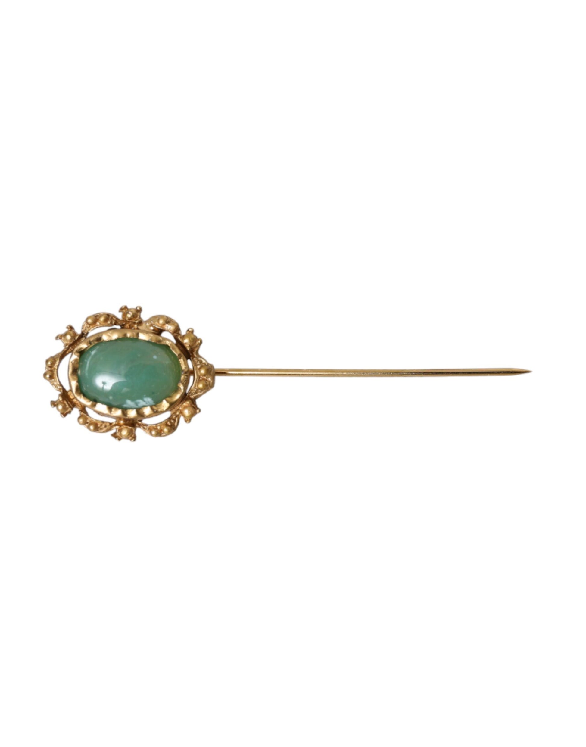 Gorgeous brand new with tags, 100% Authentic Dolce & Gabbana gold tone brass pin brooch with oval gem stone embellishments.