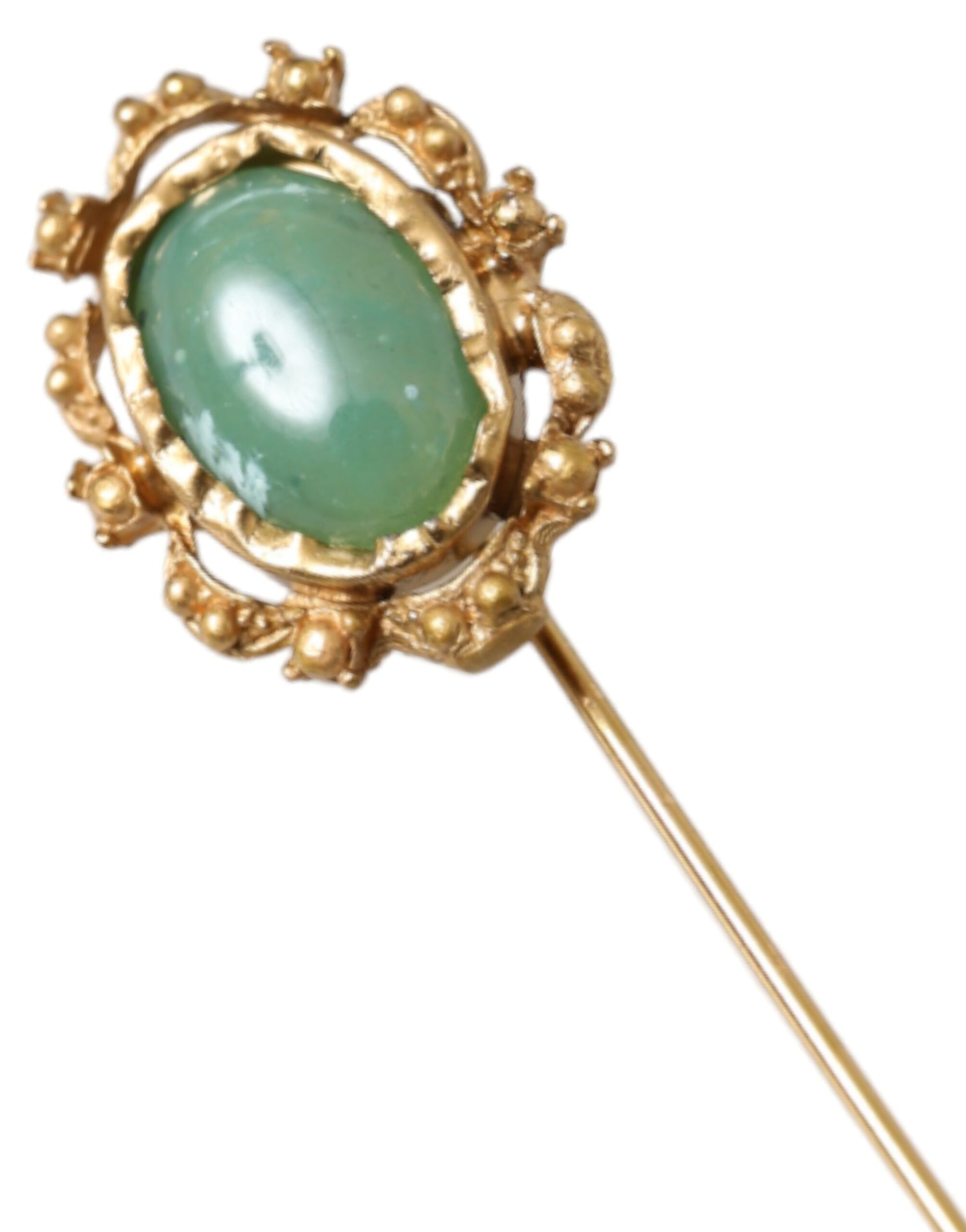 Gold Tone Brass Oval Gem Stone Men Pin Brooch