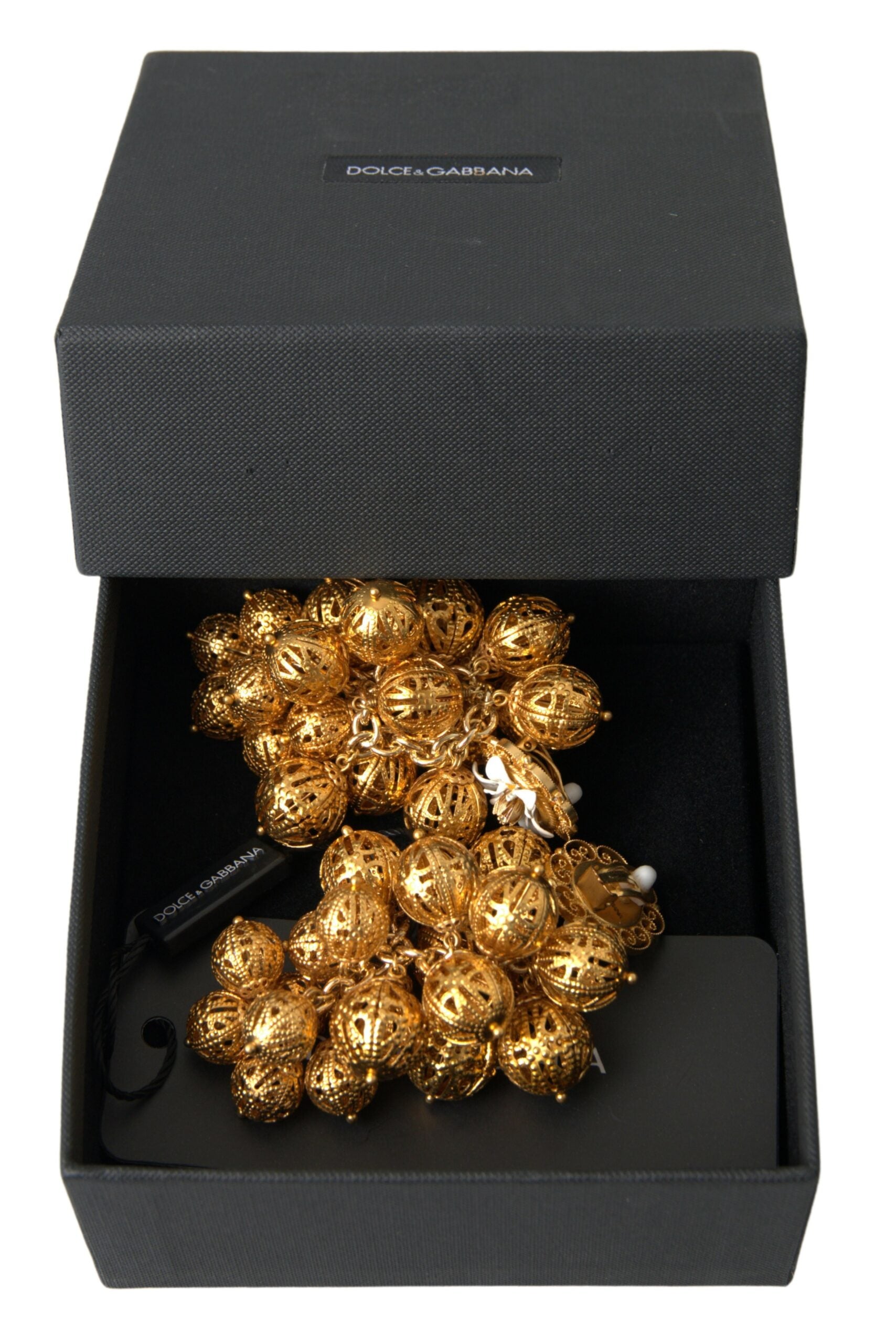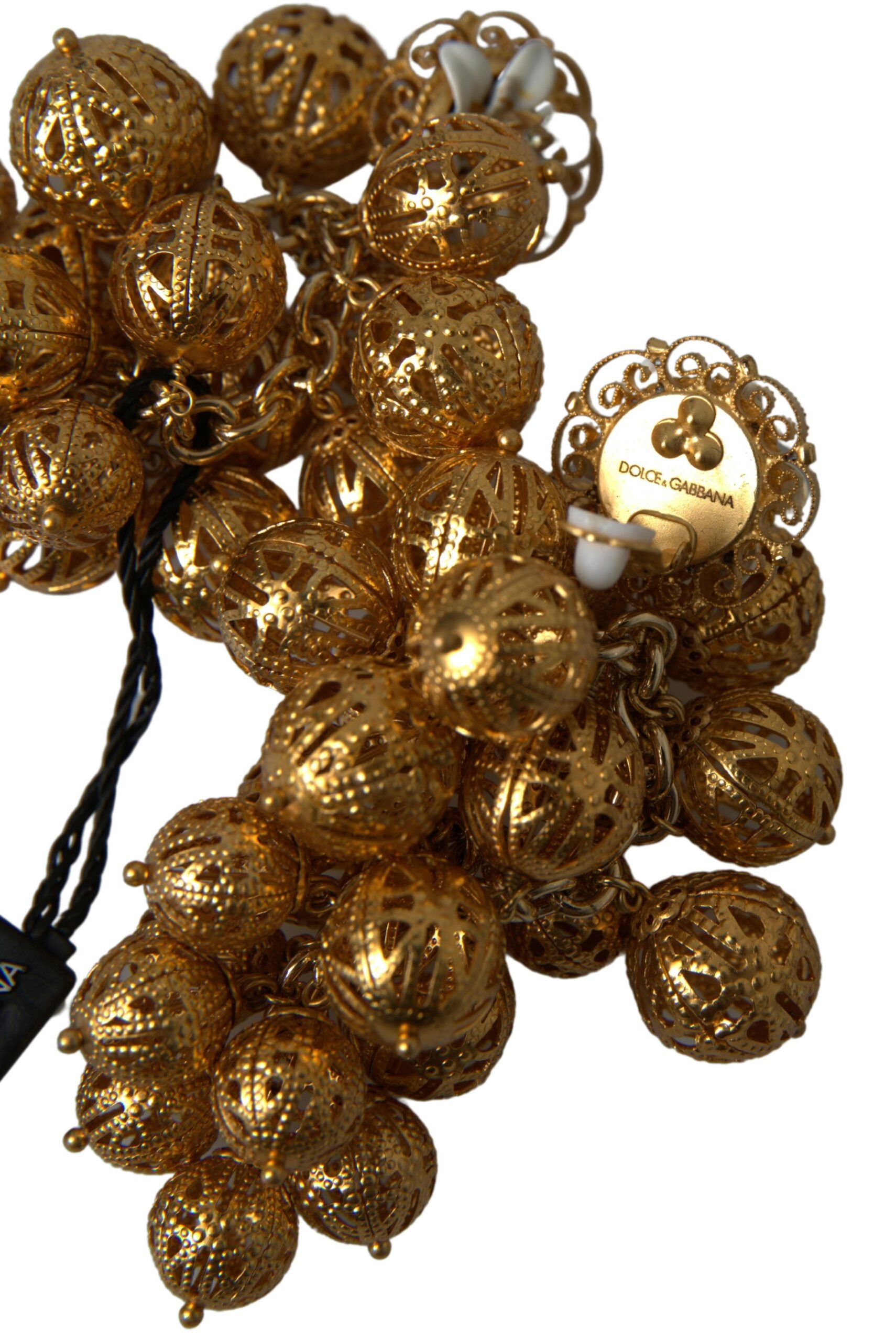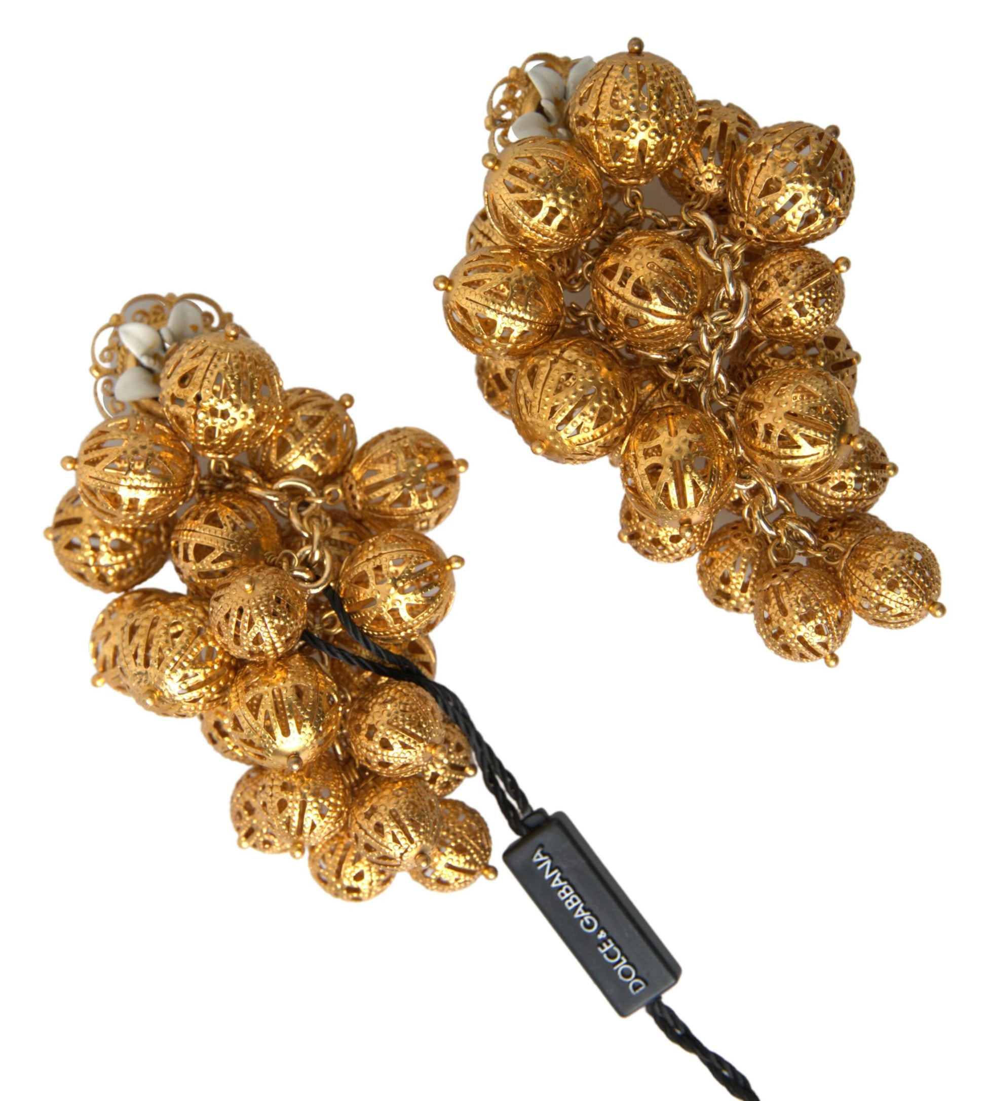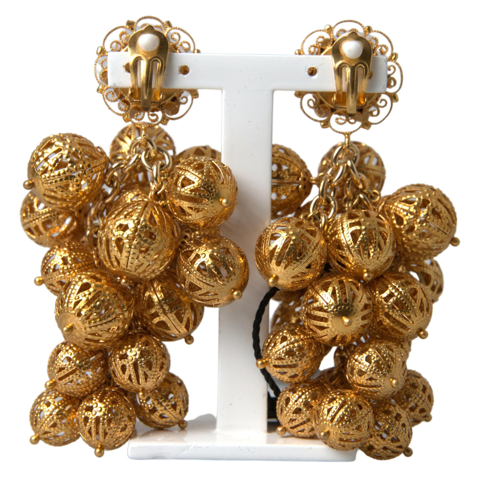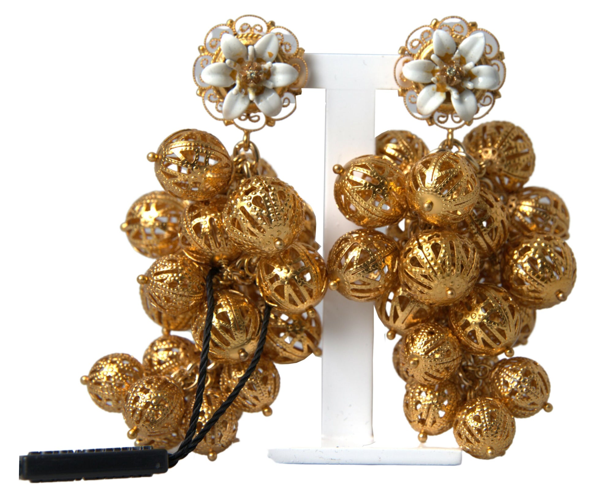 Step into sophistication with these gold-tone clip-on earrings, recently curated from the luxury house of Dolce & Gabbana. Featuring delicate white flower motifs and an exquisite filigree grape design, these earrings encapsulate elegance and artisanal craftsmanship. A perfect addition to your jewelry collection, they reflect the brand’s commitment to quality and style. Made in Italy, these earrings are a statement piece that adds a touch of glamour to any outfit.