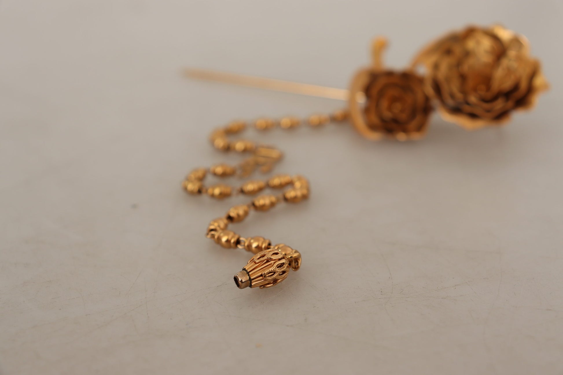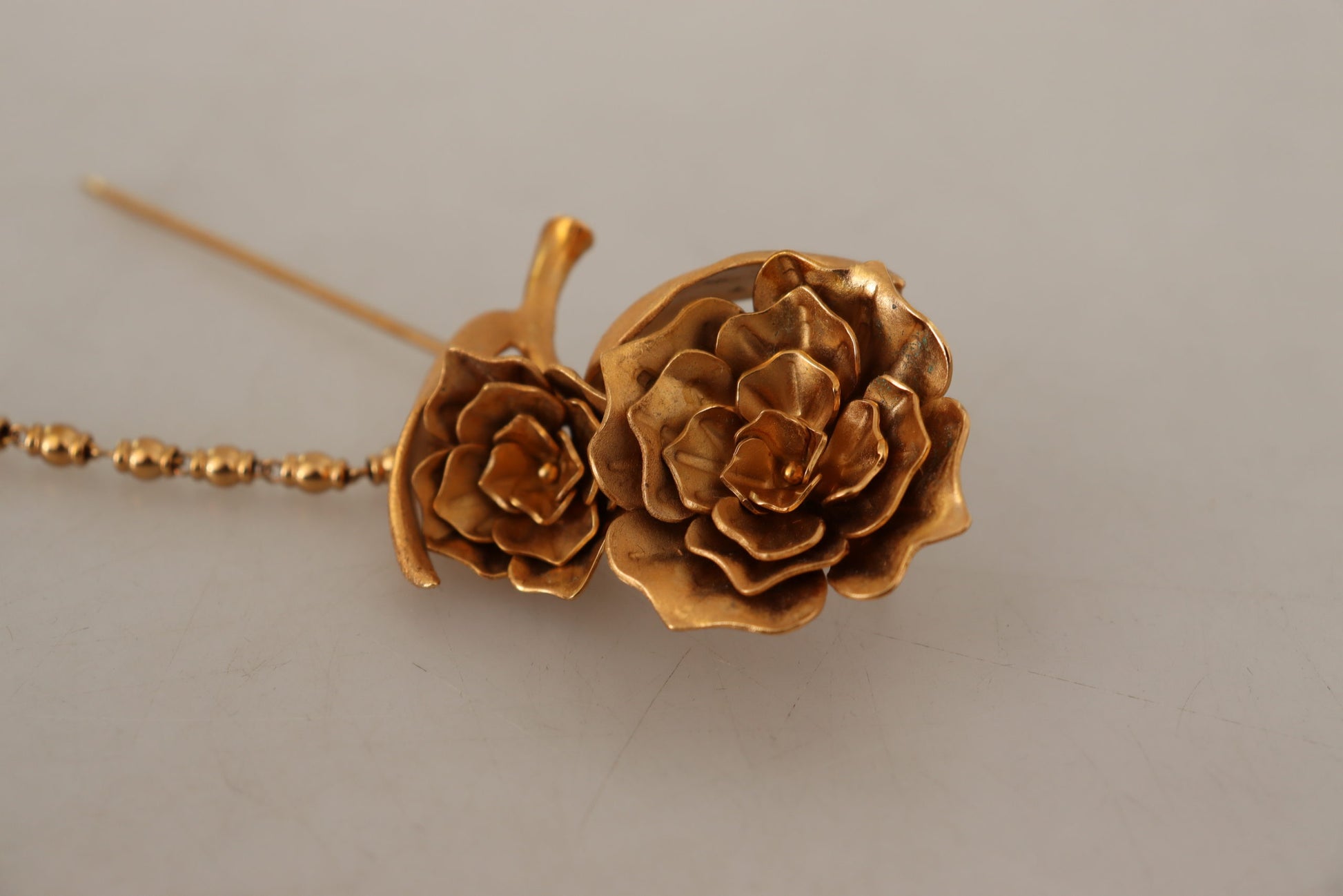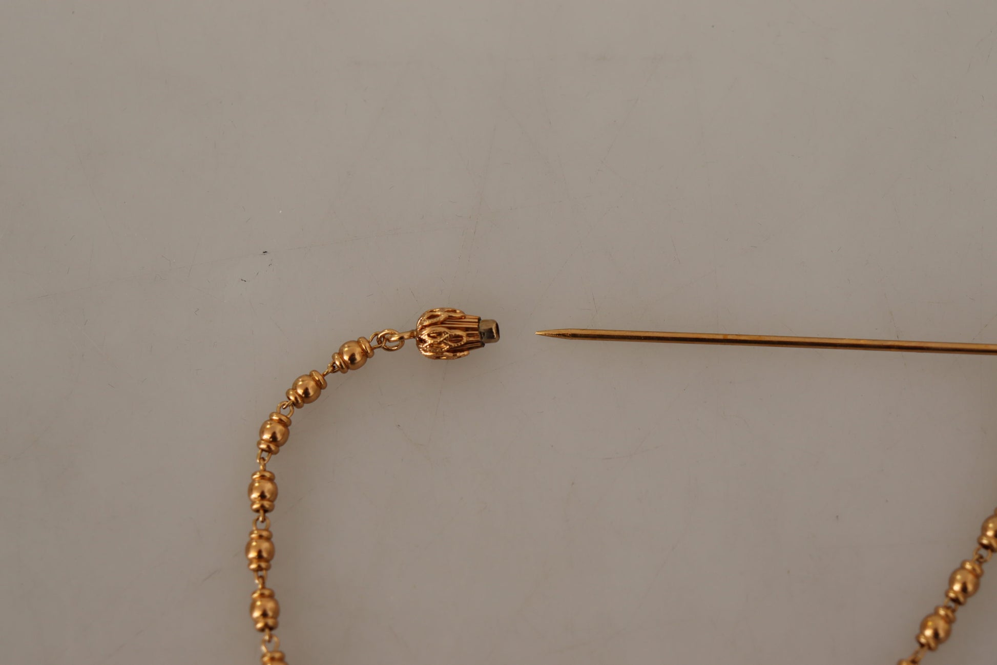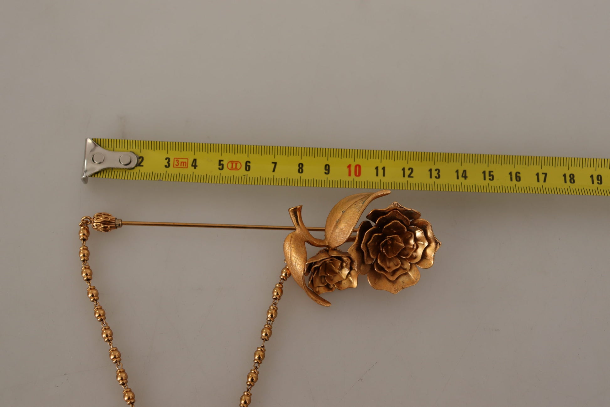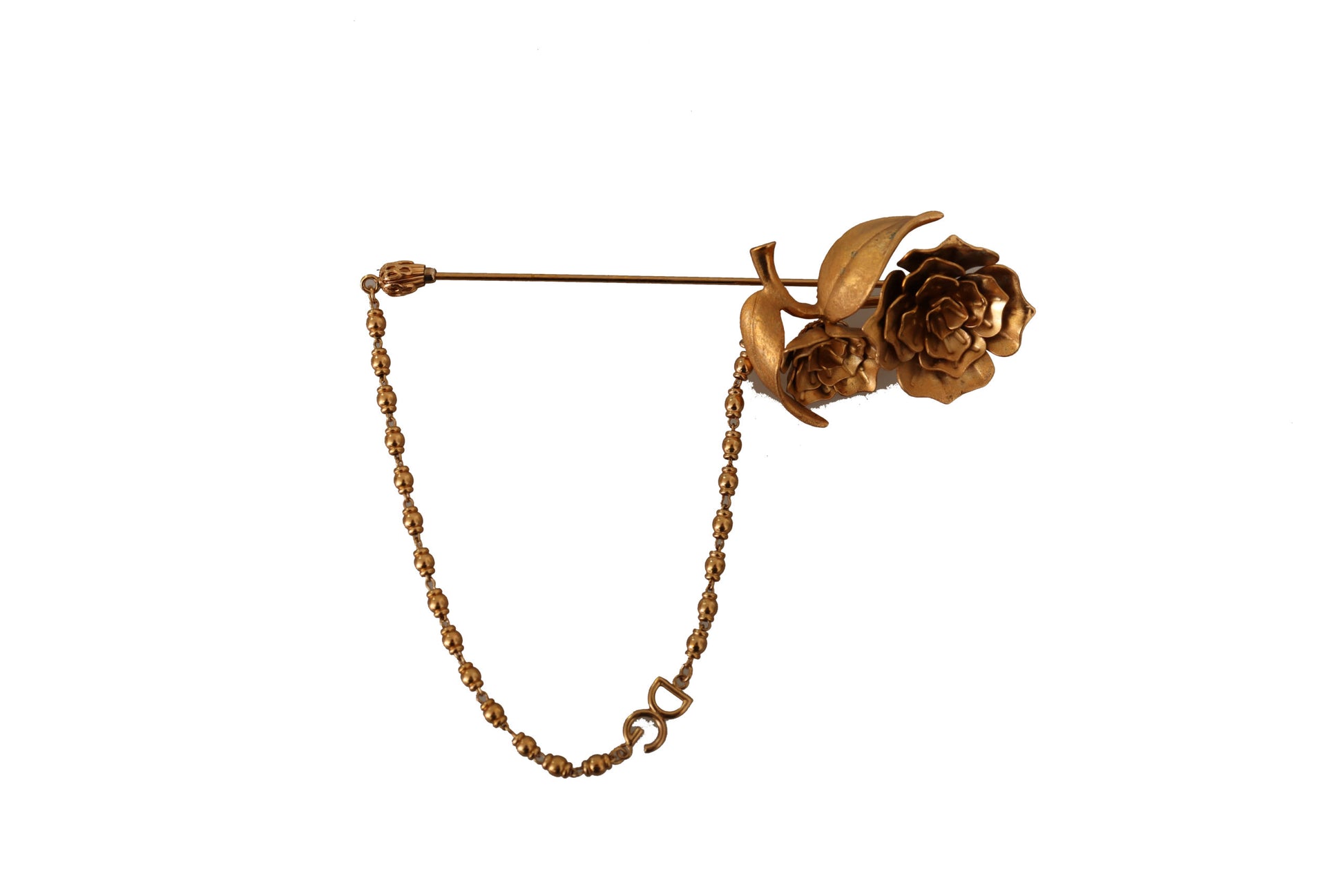Embellish your ensemble with this stunning, 100% Authentic Dolce & Gabbana gold-tone brass brooch pin. Perfect for adding a touch of glamour to any outfit, this exquisitely crafted piece showcases the elegance and luxury that Dolce & Gabbana is renowned for. Adorn your jacket, scarf, or even a stylish hat to make a statement at your next event. Complete with original tags and box, it’s a timeless addition to your jewelry collection.