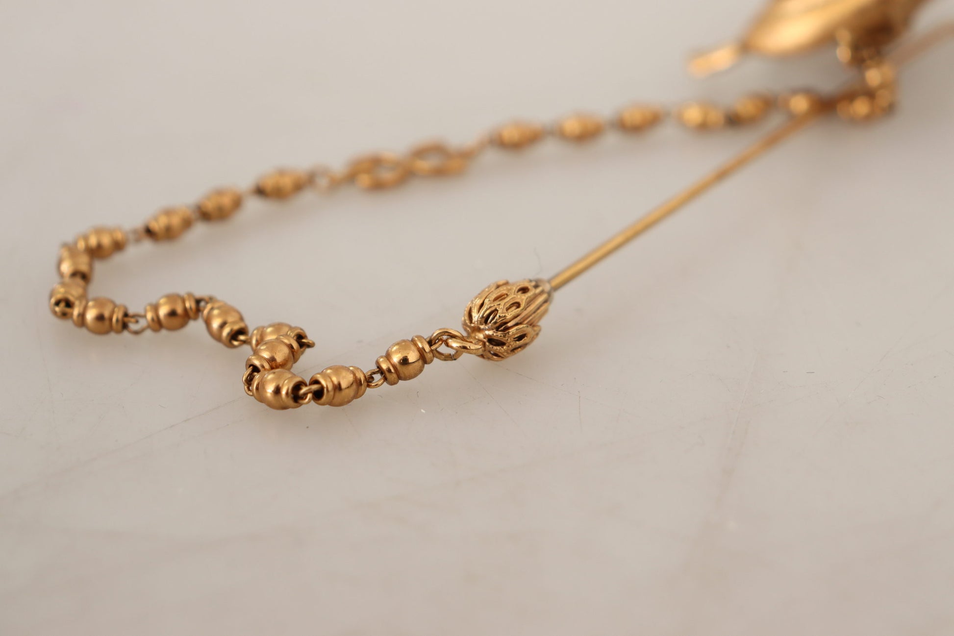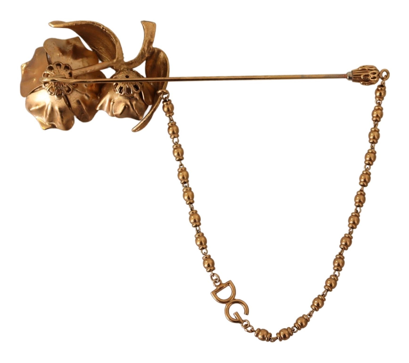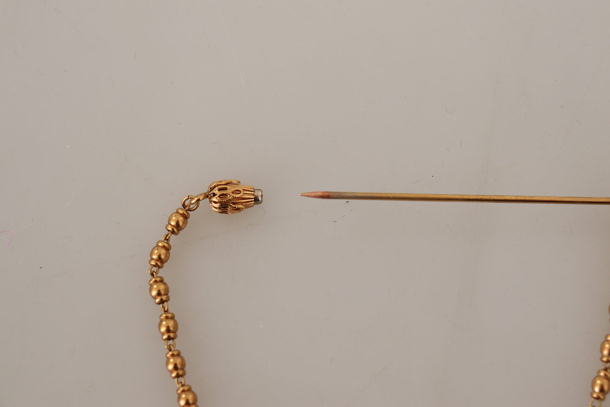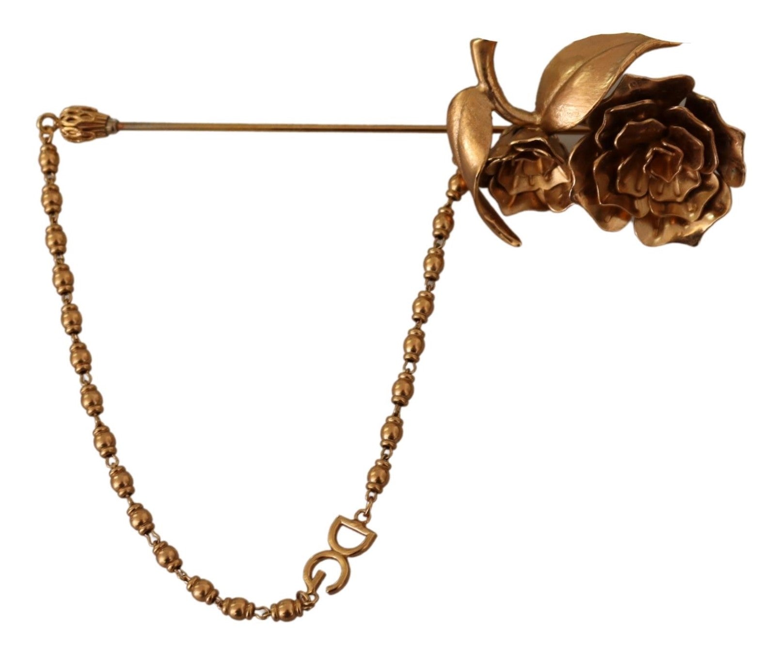 Adorn your ensemble with a touch of elegance from Dolce & Gabbana’s stunning gold tone brass brooch pin. This exquisite accessory is brand new, arriving with tags and its original box, ensuring its authenticity and pristine condition. Designed to elevate any outfit, it is made in Italy with intricate logo details, perfect for adding a luxurious flourish to your look.