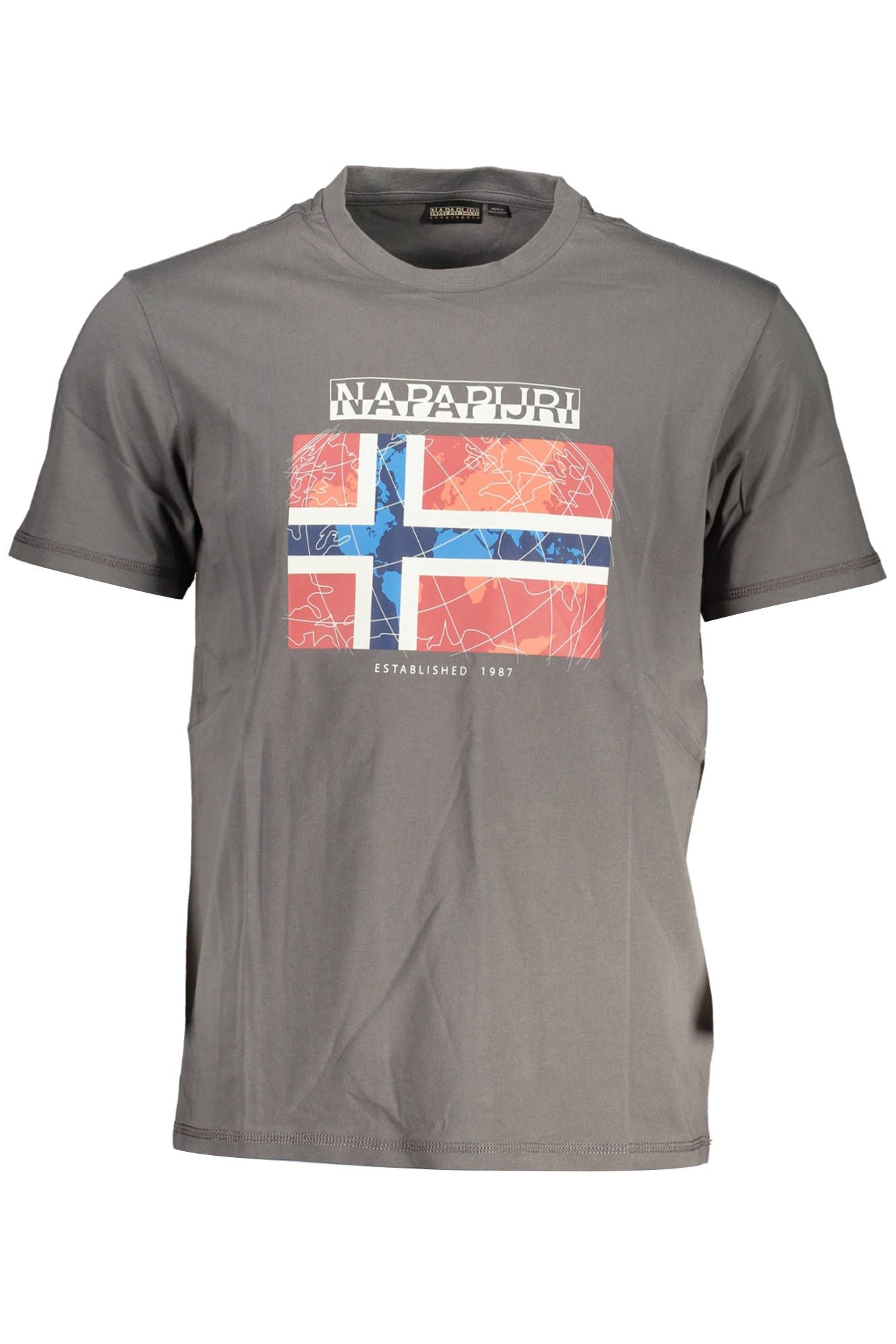 Elevate your wardrobe essentials with this Napapijri short-sleeved tee. Featuring a classic round neck cut for seamless layering, this gray T-shirt is accented with a bold print and the iconic Napapijri logo, embodying a fusion of comfort and signature style. Crafted with quality cotton and hailing from Bangladesh, it promises to be a staple in your collection.