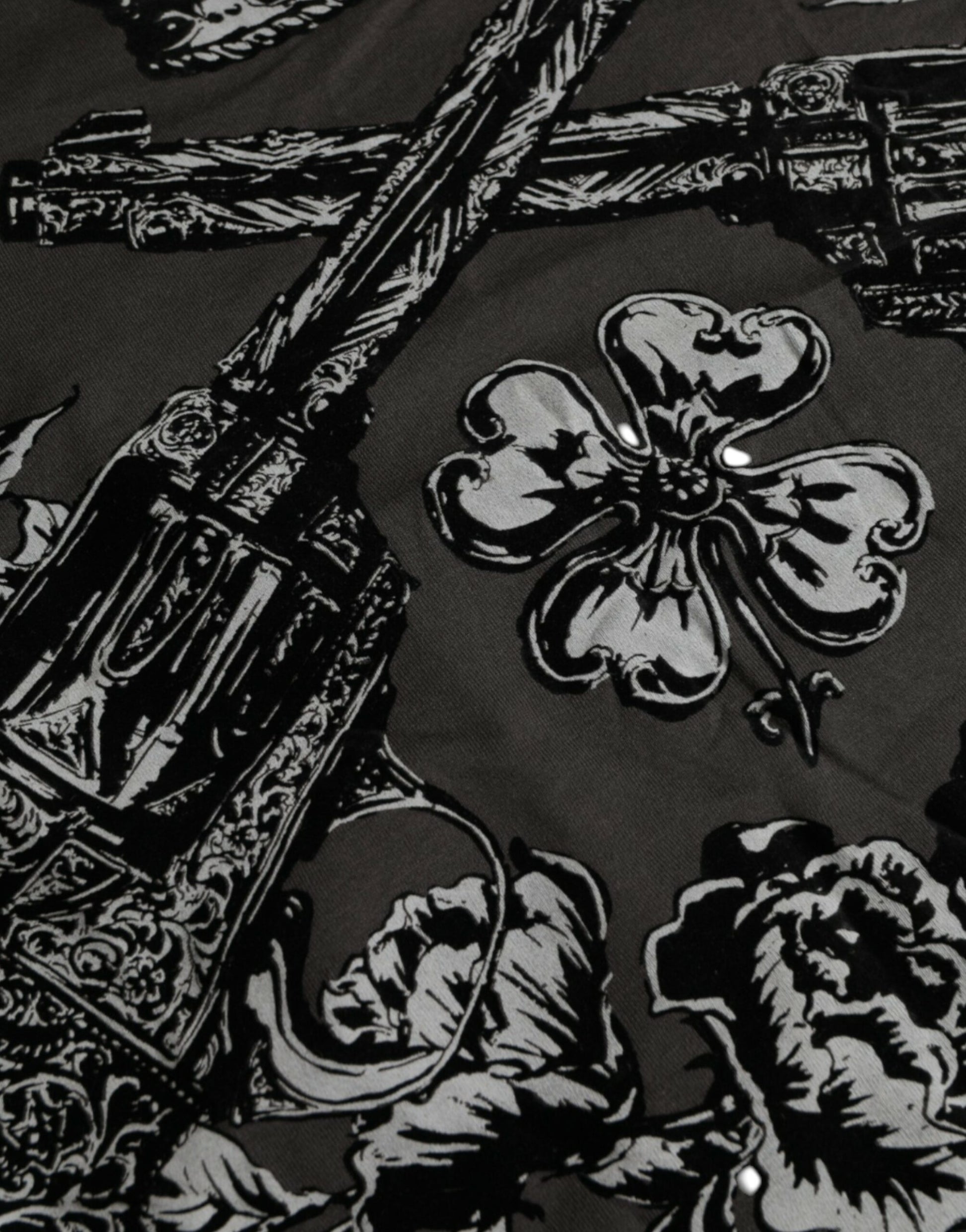 Gray Crown Floral Cotton Crew Neck T-shirt