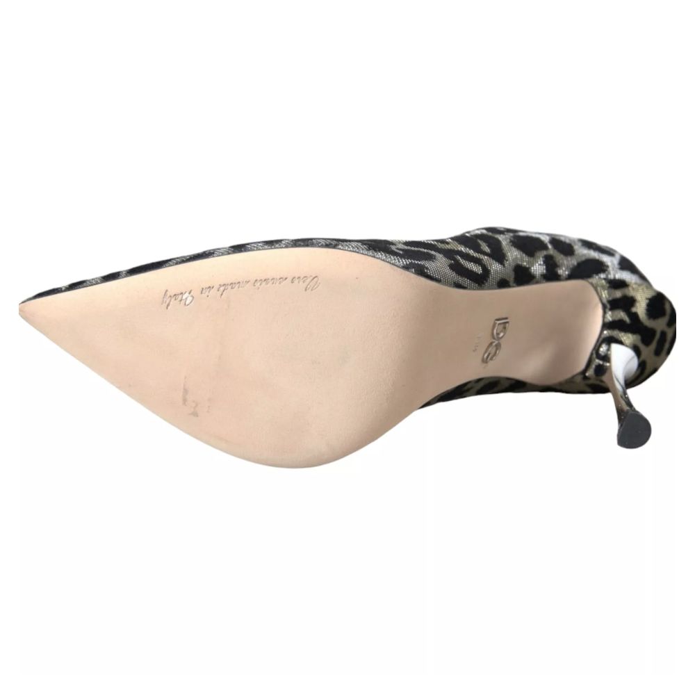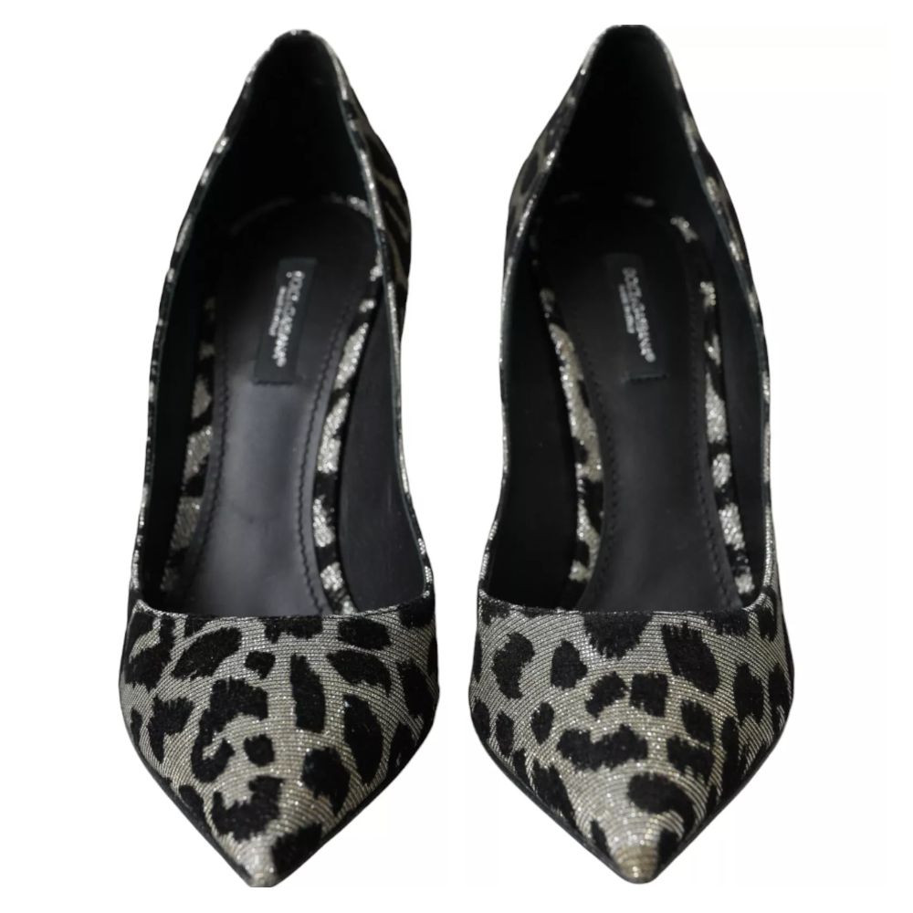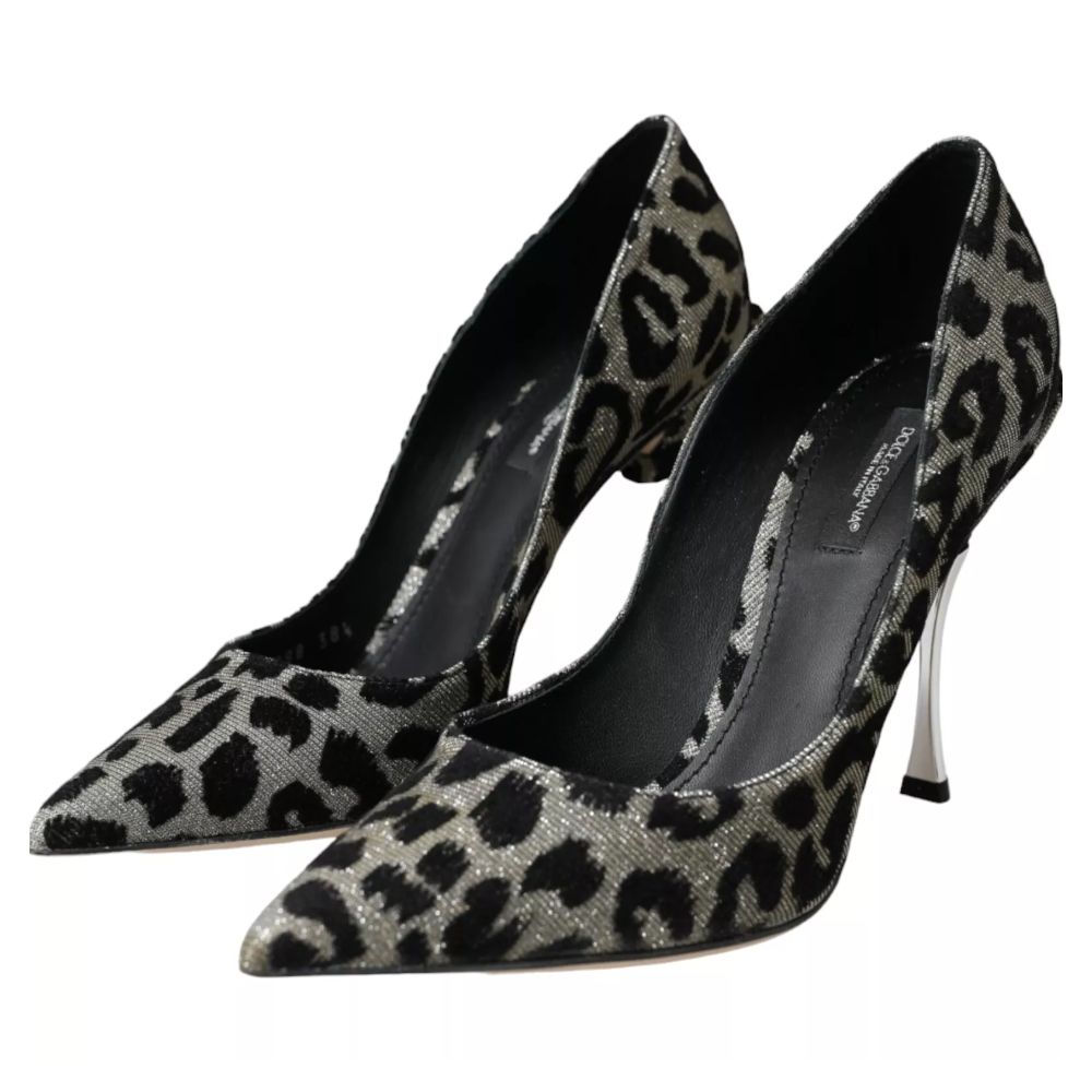Dolce & Gabbana calfskin pumps covered with silver leopard print velvet fabric, black leather interior, goatskin sole