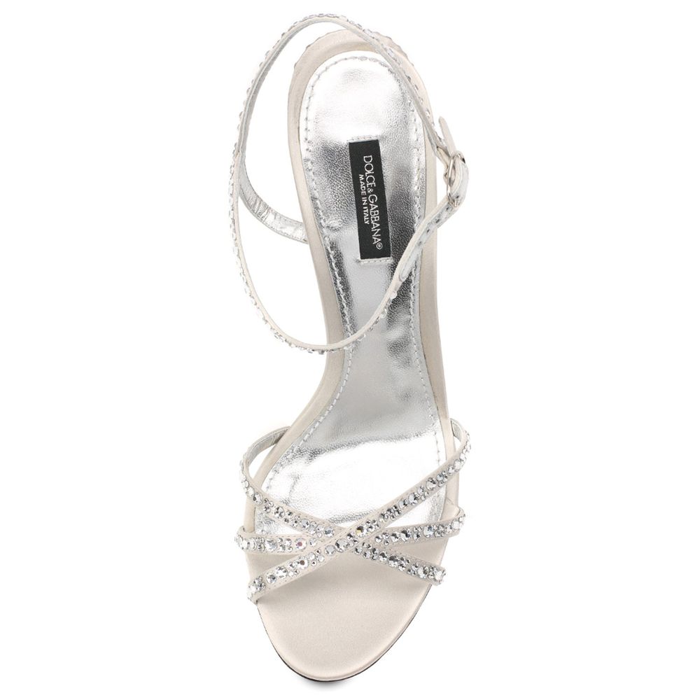 Dolce & Gabbana sandals in silver patent calfskin and viscose parts with jewel decoration on the front, on the strap and on the heel