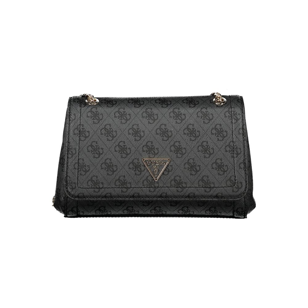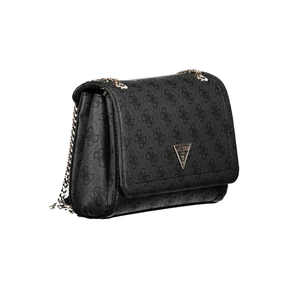 NOELLE BAG, 2 CHAIN SHOULDER HANDLES, 1 EXTERNAL POCKET, 3 COMPARTMENTS, 1 INTERNAL POCKET, INTERNAL SPACES FORMED BY CARDS, CONTRAST DETAILS, SNAP CLOSURE, LOGO