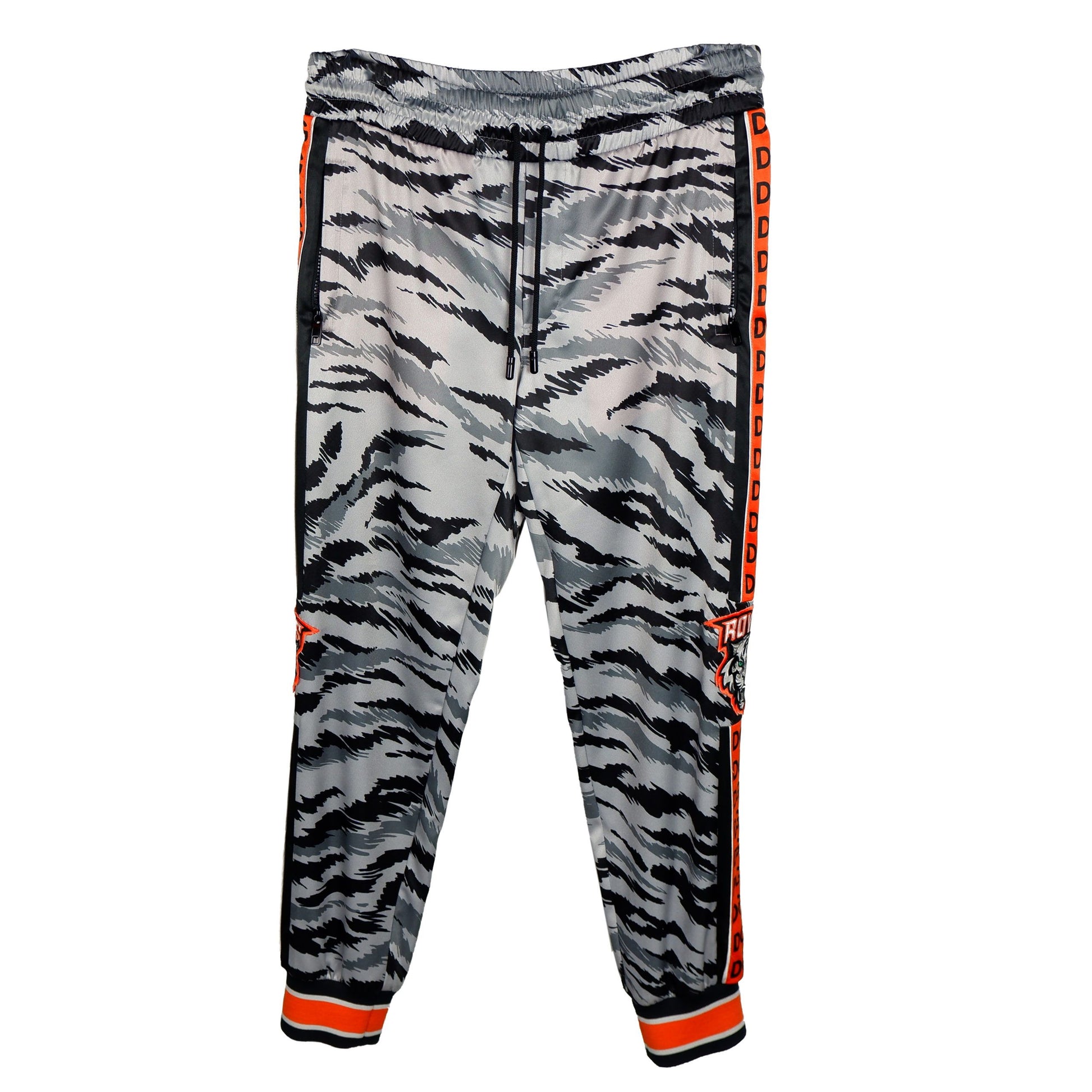 Step into the epitome of luxury with these Dolce & Gabbana trousers, masterfully crafted from a blend of rich silk and a touch of elastane for that perfect stretch. The grey and black print is effortlessly punctuated by vibrant orange side bands, showcasing the iconic DG logo for an unmistakable touch of designer flair. Italian-made sophistication meets contemporary style, ensuring you make an unforgettable statement wherever you go. Slip into comfort and class with a drawstring waist and practical side zip pockets.