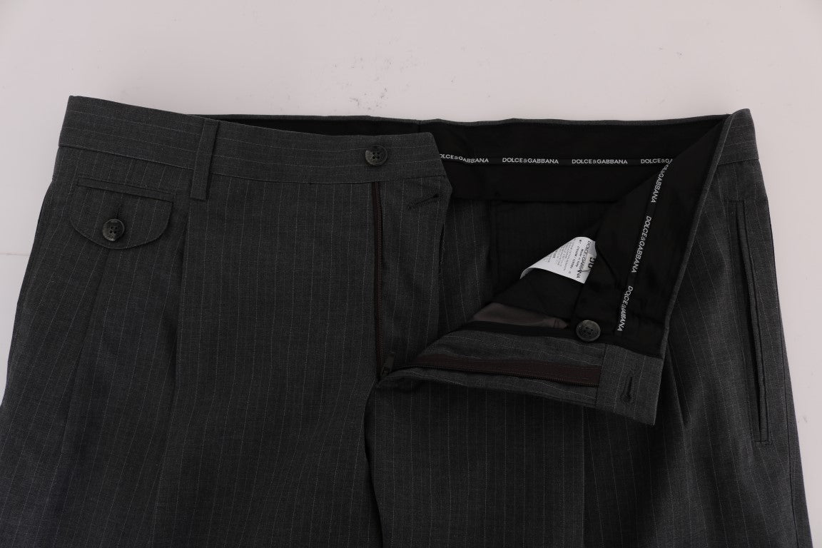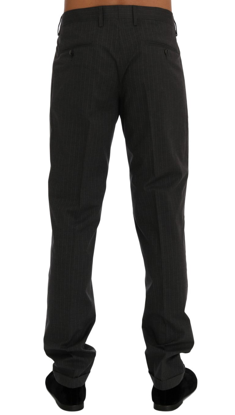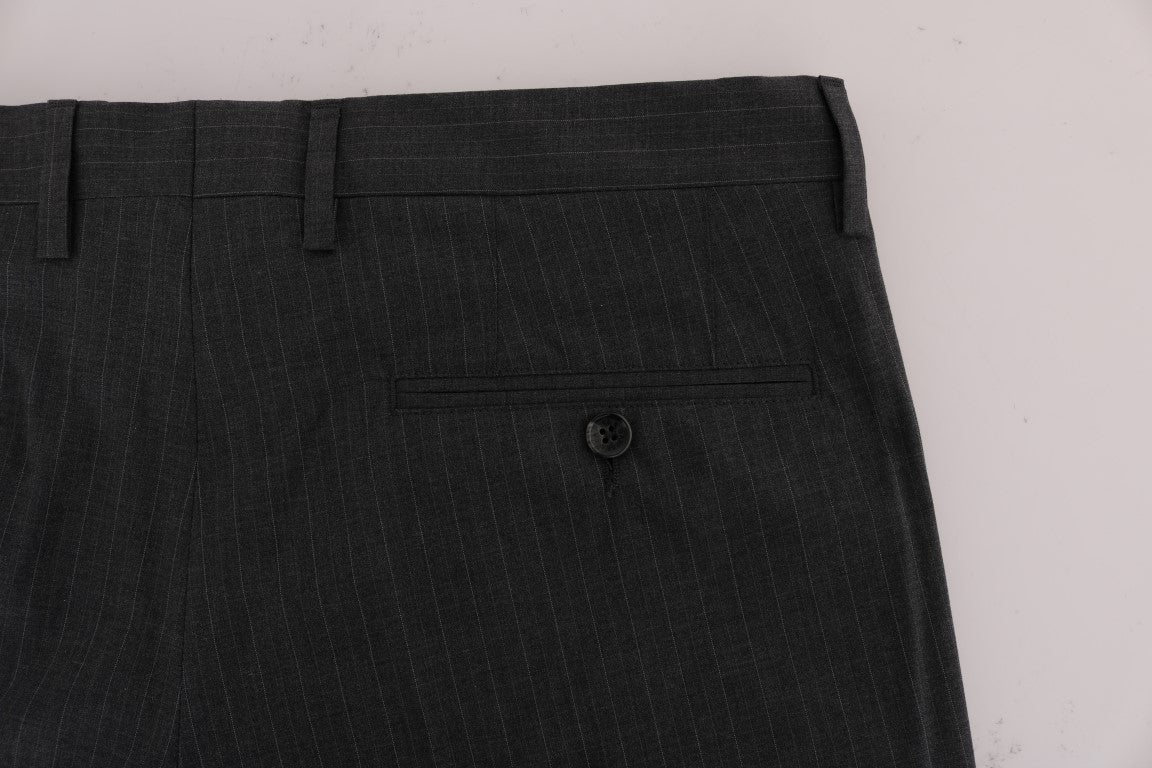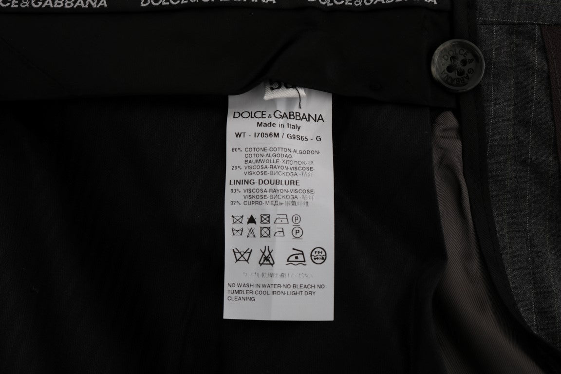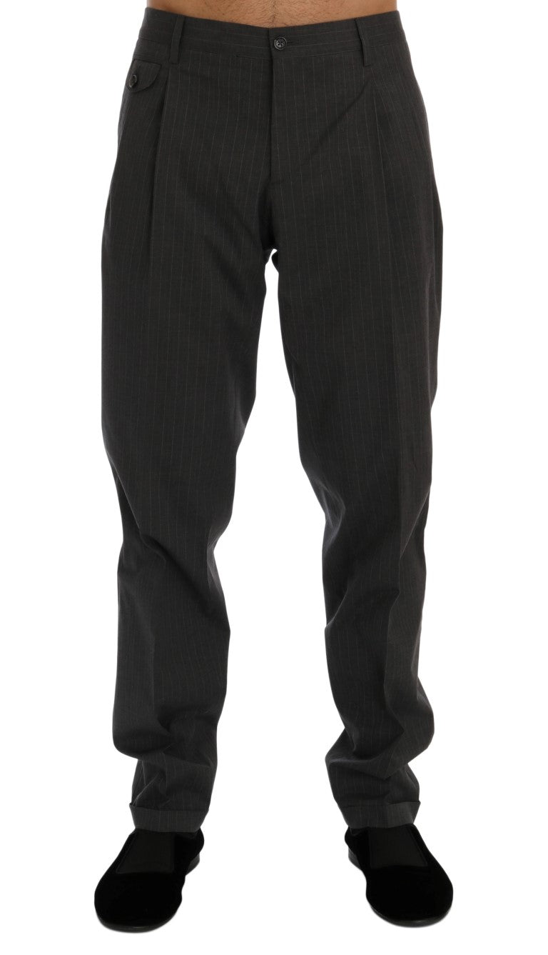 Step up your style game with these sophisticated Dolce & Gabbana men’s dress trousers. Perfect for any formal or business-casual occasion, these pants are brand new with tags and exude elegance. Boasting a sharp gray striped pattern, they offer a straight fit that’s both comfortable and flattering. Complete with convenient front and back pockets, and a practical zipper fly closure, these trousers are finished with subtle logo details for an unmistakable touch of luxury. Crafted with the finest Italian craftsmanship, they are a wardrobe essential for any well-dressed gentleman.
