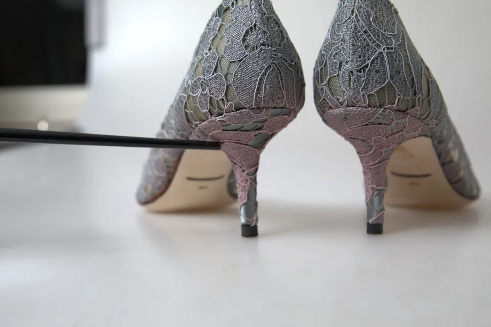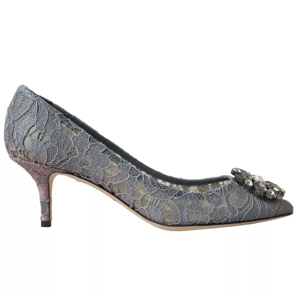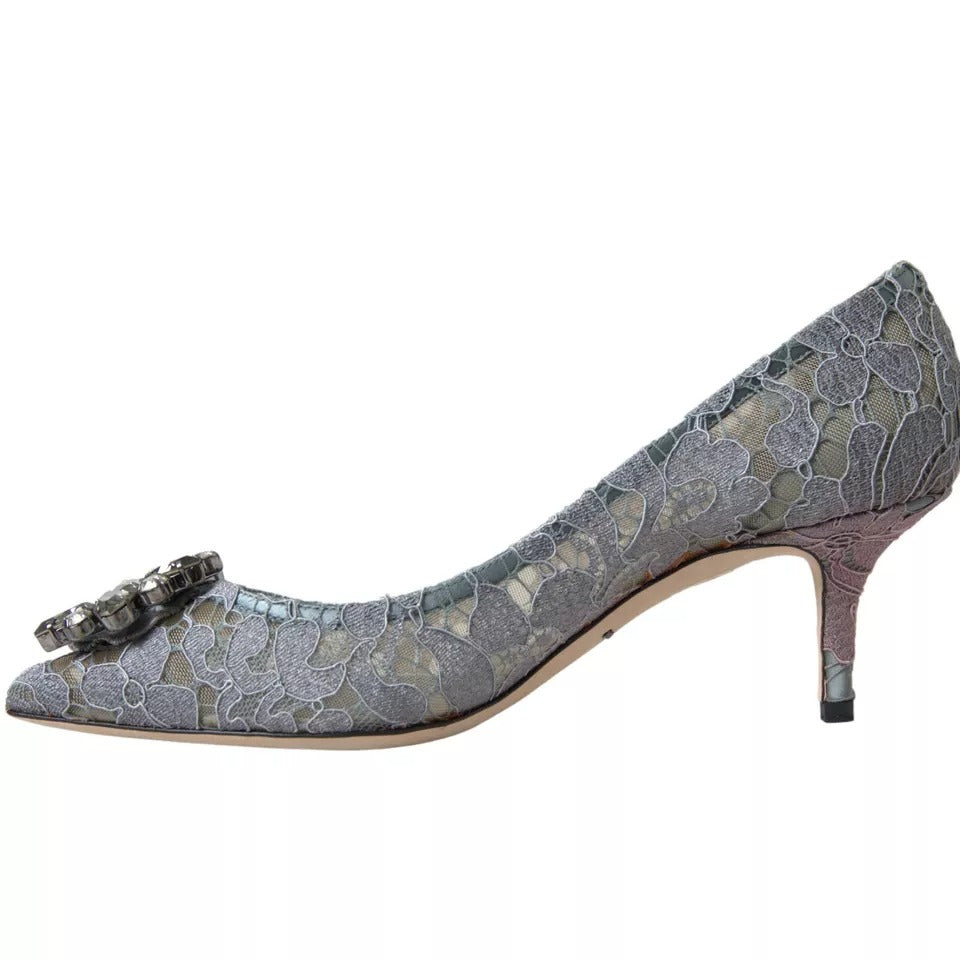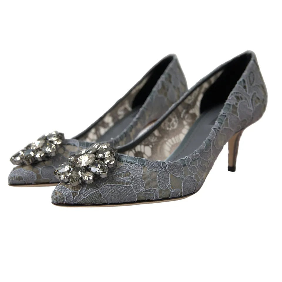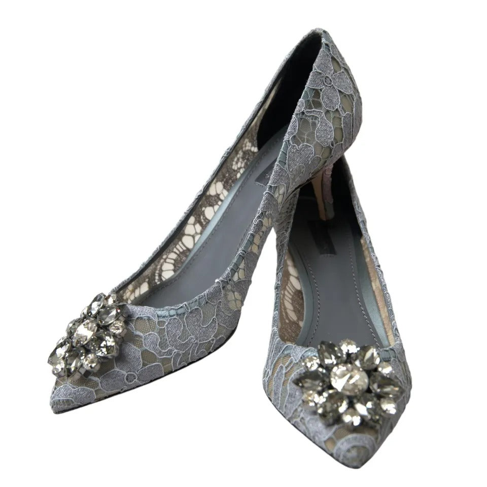 Gray Taormina Lace Crystal Heels Pumps Shoes