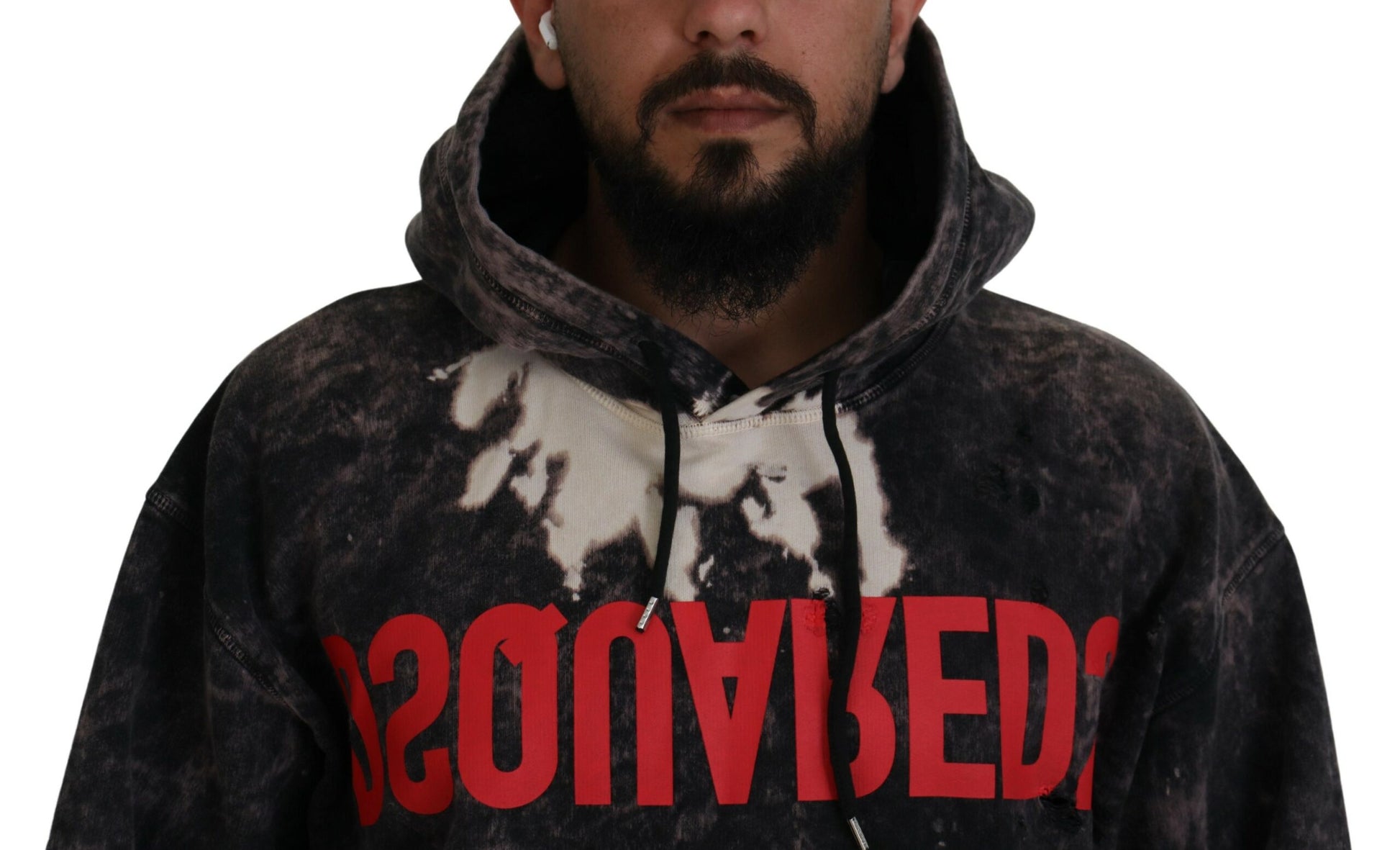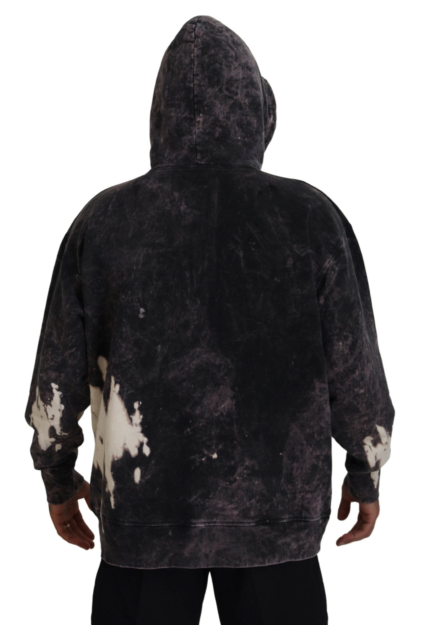 Gray Wash Hooded Printed Men Pullover Sweater