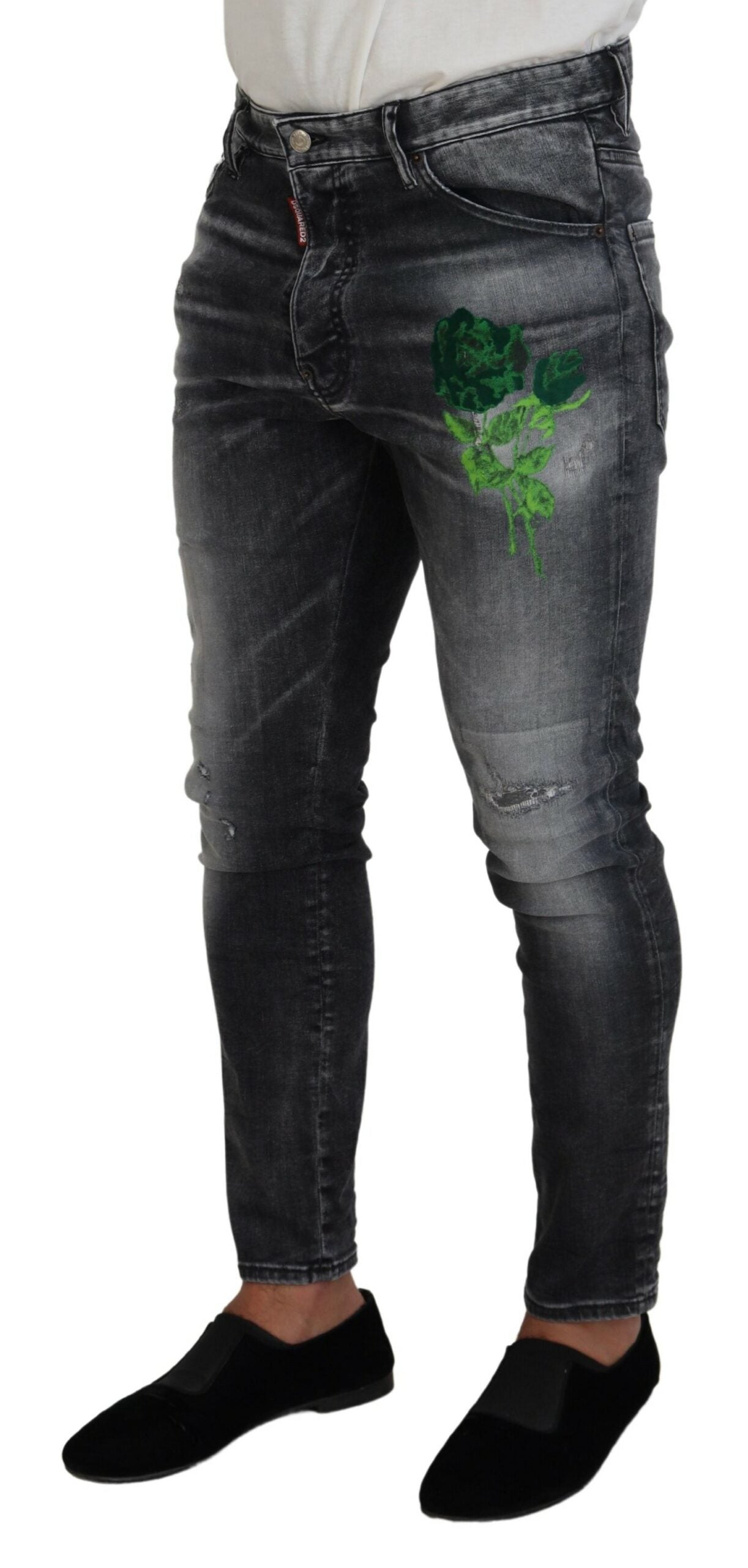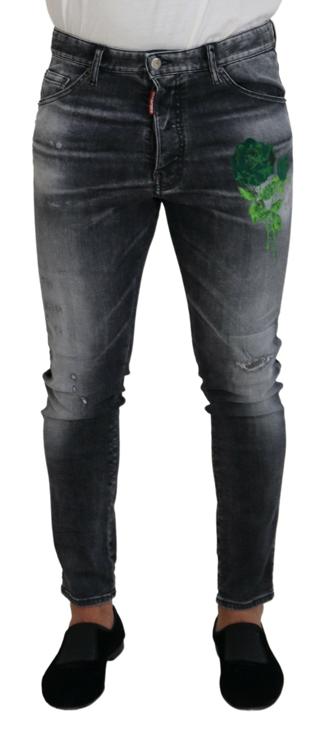 Gray Washed Green Print Skinny Casual Denim Jeans