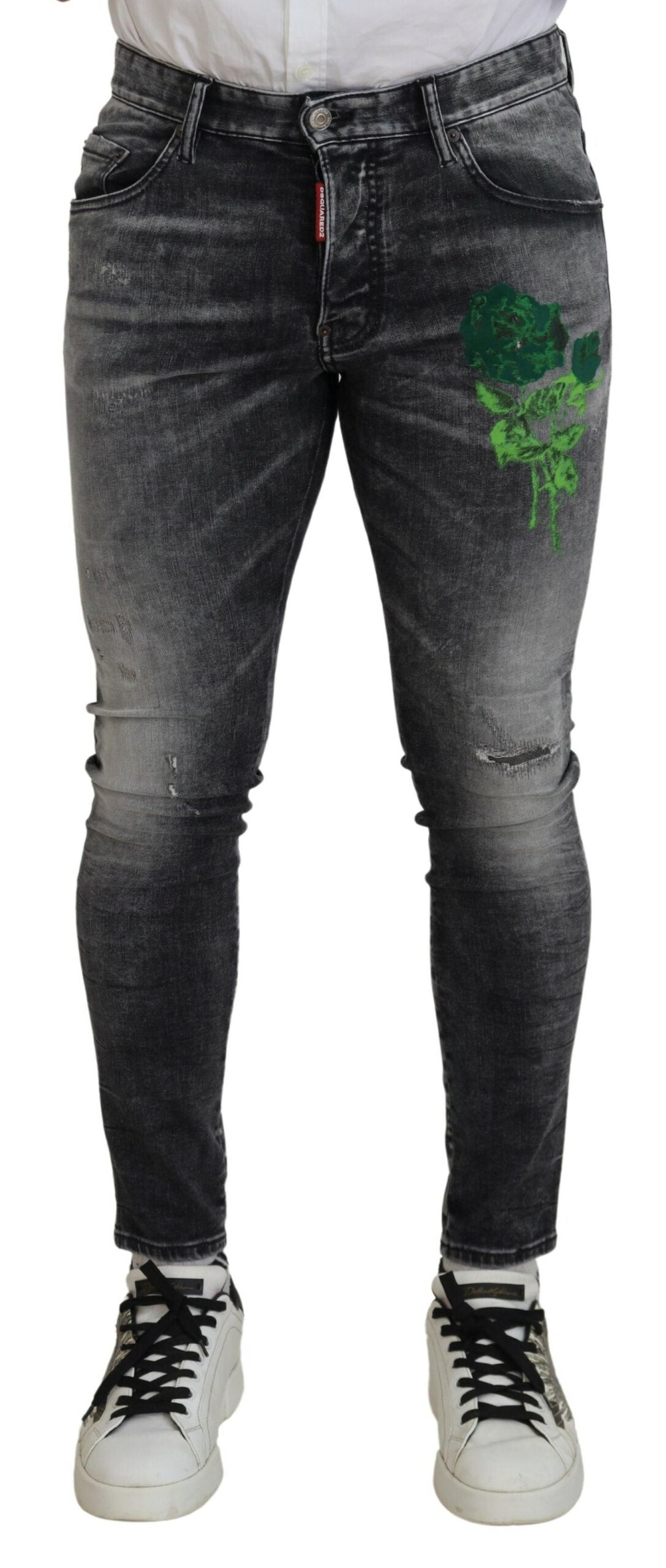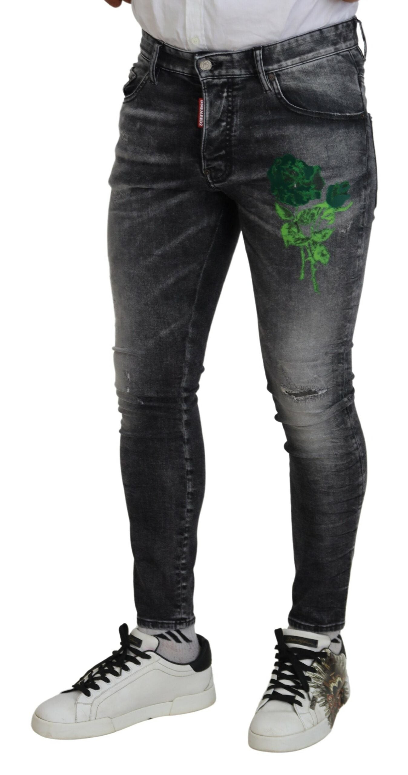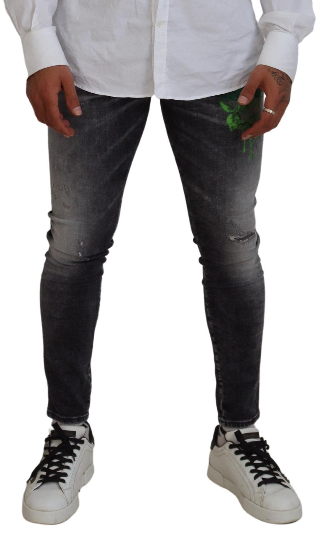 Gray Washed Green Print Skinny Casual Denim Jeans