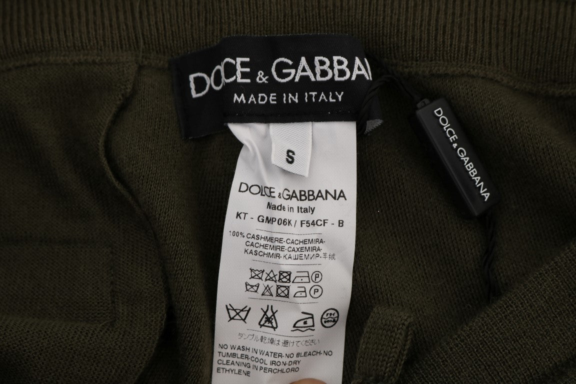 Discover unparalleled comfort and style with these Elegant Green Cashmere Sport Pants . Crafted from luxurious 100% cashmere and brought to you by the esteemed Dolce & Gabbana , these pants are a statement of sophistication. Perfect for your sporty yet stylish endeavors, they feature two front and one back zipped pockets, an adjustable waist strap for the perfect fit, and the iconic logo detail as a mark of true quality. Made in Italy, these pants are a blend of fashion and functionality.