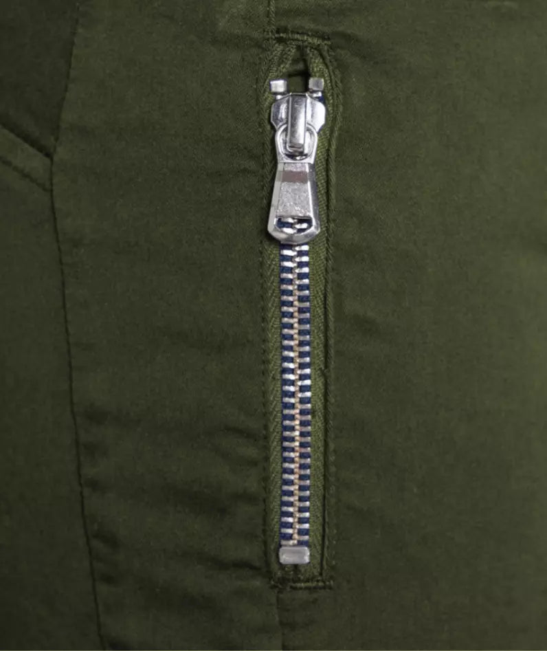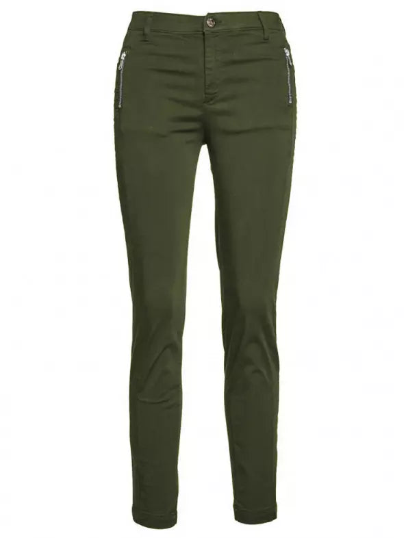 Refine your wardrobe with these exquisite stretch cotton trousers, perfect for adding a touch of elegance to your everyday attire. Designed for a flattering fit, these trousers feature two front zip pockets for a blend of practicality and style. The button and zip closure ensures a snug and comfortable fit, while the dazzling rhinestone decoration on the button adds a sparkle that elevates these pants to a luxurious must-have.