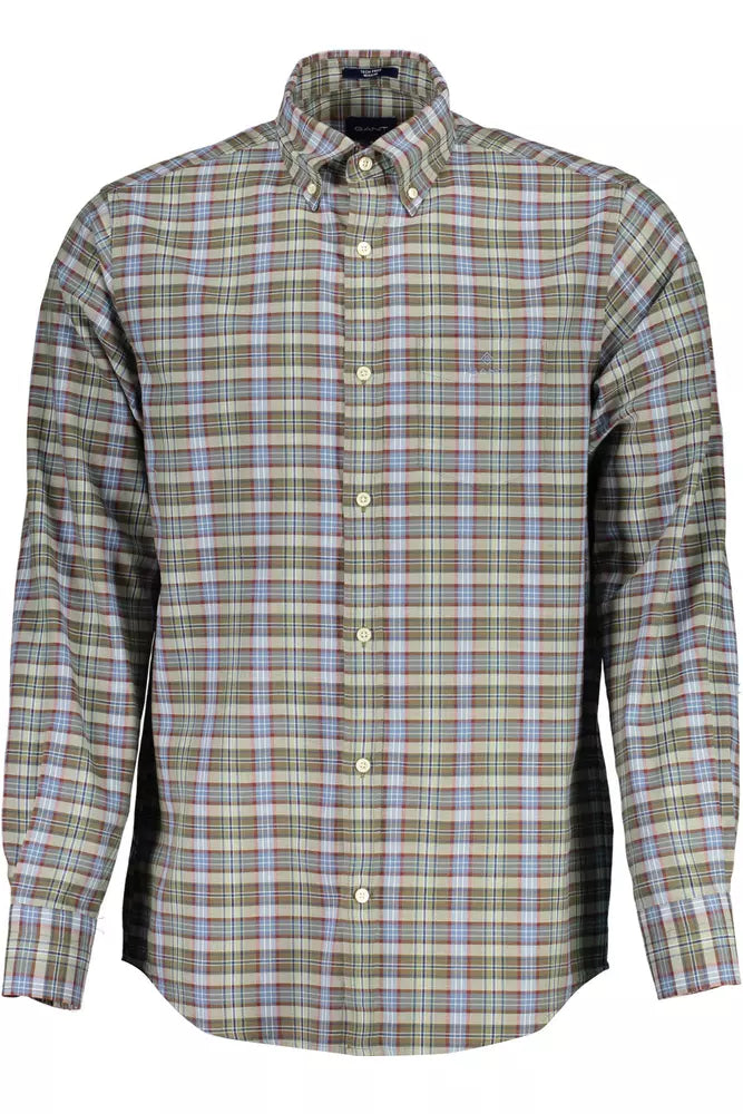 Dress to impress in a sophisticated Gant classic that never goes out of style. This regular-fit long-sleeved shirt boasts a sharp button-down collar, tailored to precision with adjustable single-button cuffs. Each button underscores the quality Gant is renowned for, all while showcasing the iconic brand logo for a statement of authenticity and style. Expertly crafted from a blend of cotton and polyester, this shirt ensures both comfort and durability. The subtle green hue makes it a versatile addition to any fashion-forward gentleman’s wardrobe. Elevate your ensemble with Gant’s impeccable tailoring and timeless design.