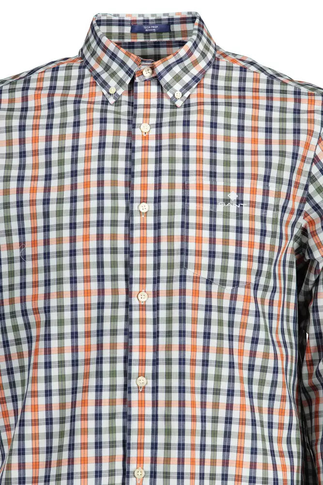 Discover the epitome of sophistication with the Gant regular long-sleeved shirt. A quintessential piece for the fashion-forward individual, this shirt boasts a crisp button-down collar and a singular pocket. The cuffs are neatly secured with a single button, offering a refined touch. The signature Gant logo subtly adorns the piece, cementing its premium status. Perfectly amalgamating classic style with modern flair, it’s a versatile addition to your wardrobe, embodying a bold and trendy vibe.