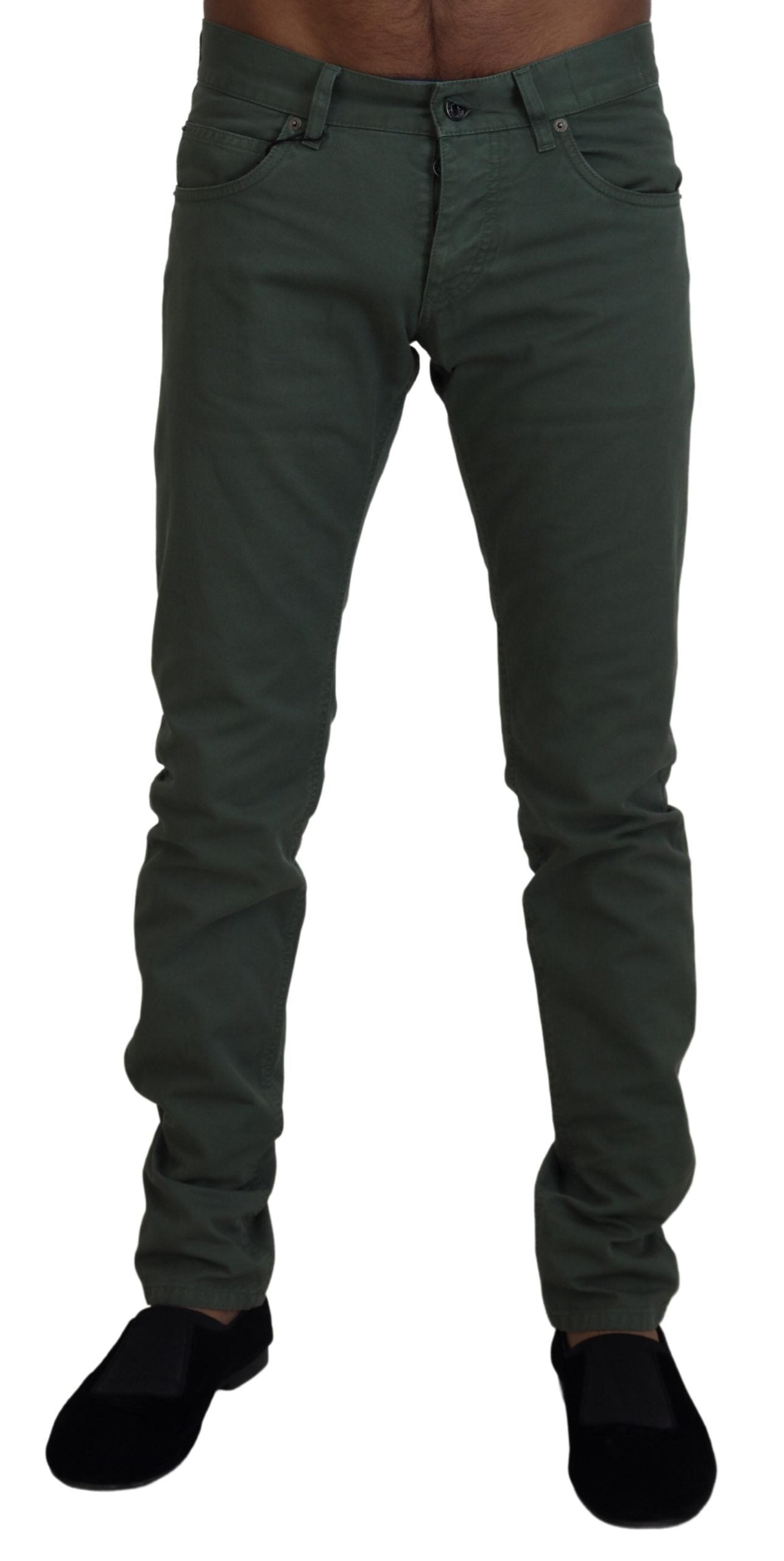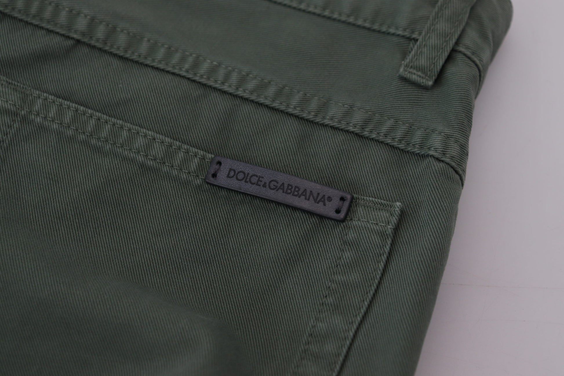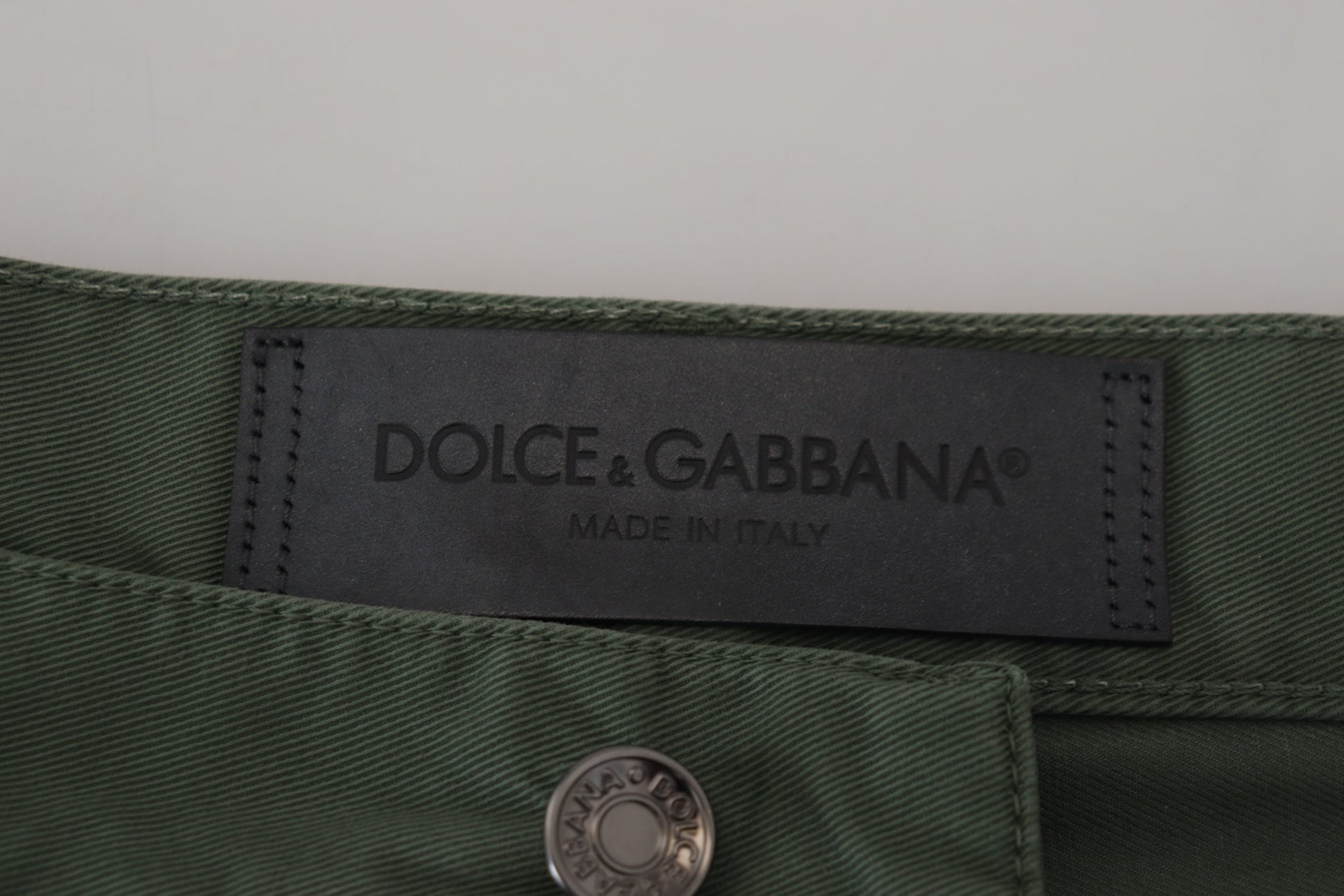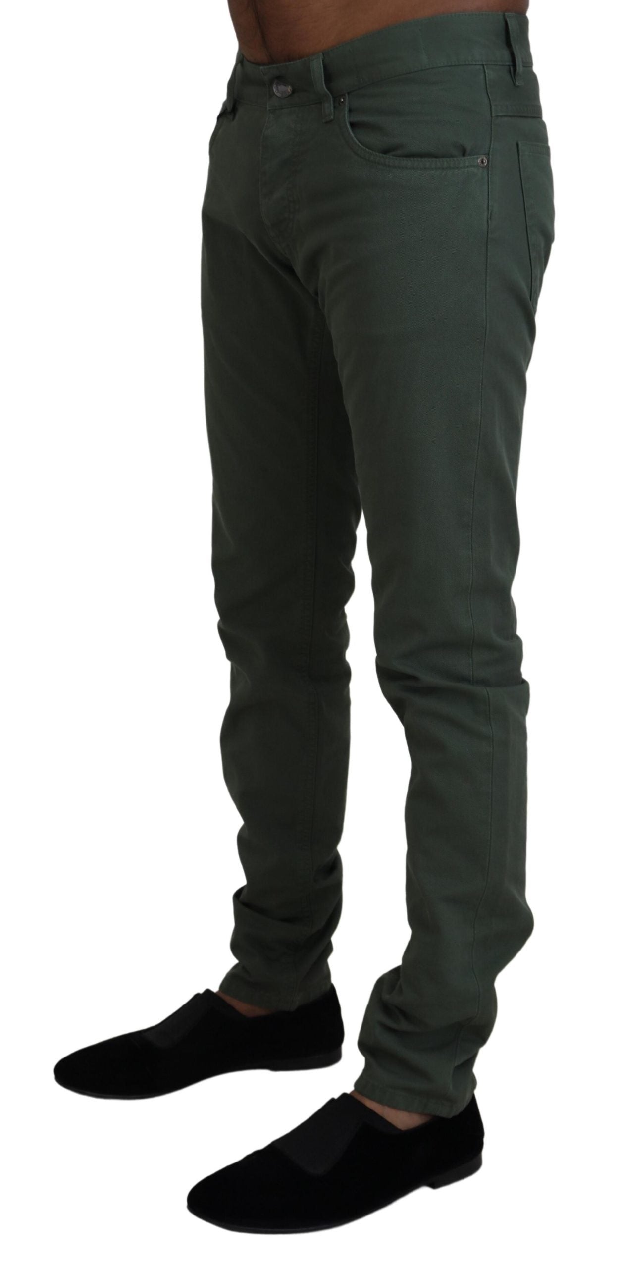 Exude sophistication with these stunning emerald green denim pants, a testament to the unmatched craftsmanship of Dolce & Gabbana. Tailored to perfection, these pants are brand new, come with tags, and feature a refined button closure detailed with the distinctive Dolce & Gabbana logo. Crafted in Italy from the finest 100% cotton, these jeans offer both unparalleled comfort and style. Ideal for those who appreciate luxury in every thread.