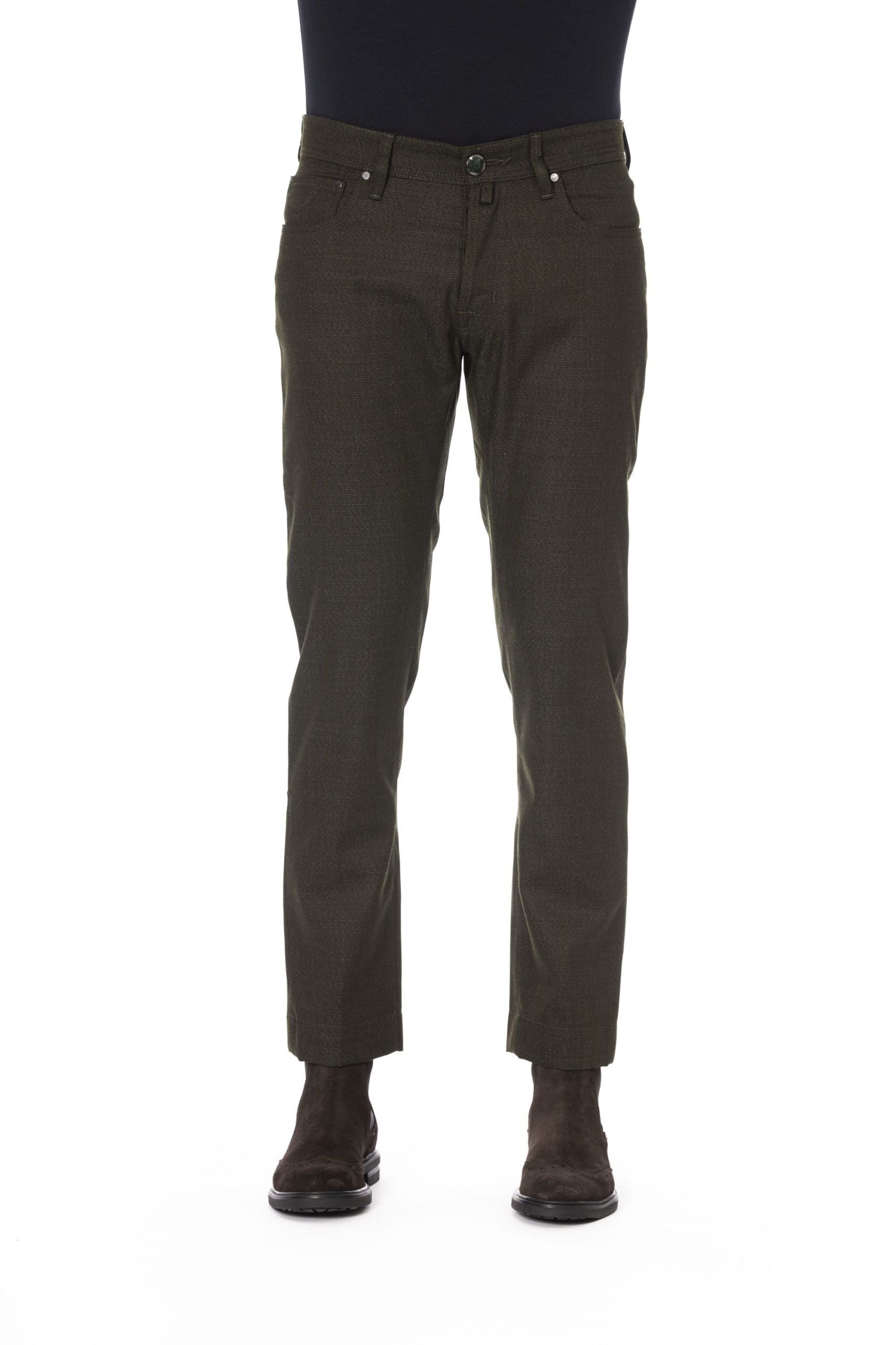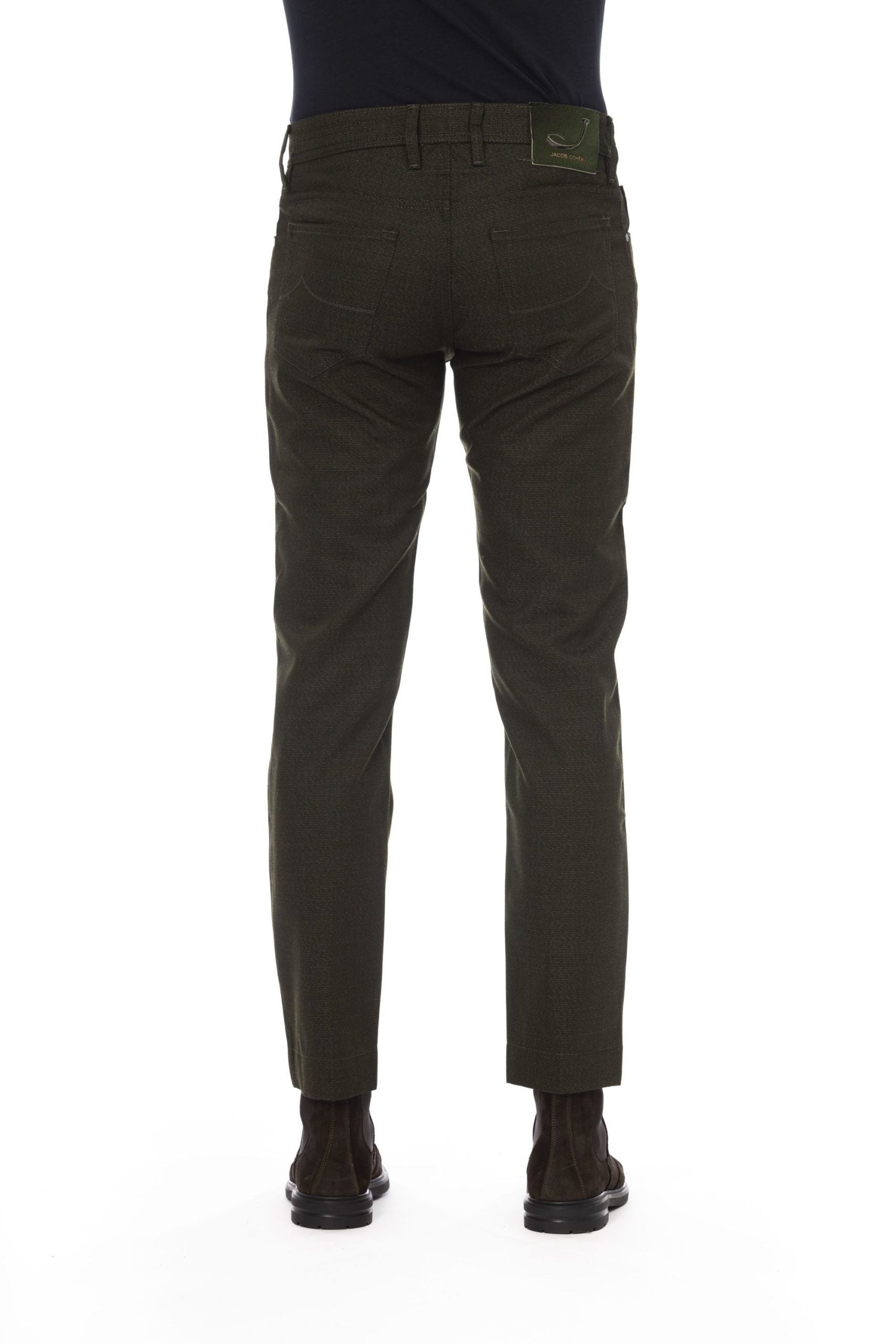 Indulge in the epitome of contemporary luxury with Jacob Cohen’s exquisite green 5-pocket jeans. Tailored with precision, these pants are adorned with an eye-catching logo button and intricate logo embroidery on the pocket. The signature pony skin label embossed with the brand’s logo adds a touch of elite sophistication. Feel the difference with premium Italian craftsmanship in every stitch. Elevate your wardrobe with this versatile piece that blends classic style with modern flair.