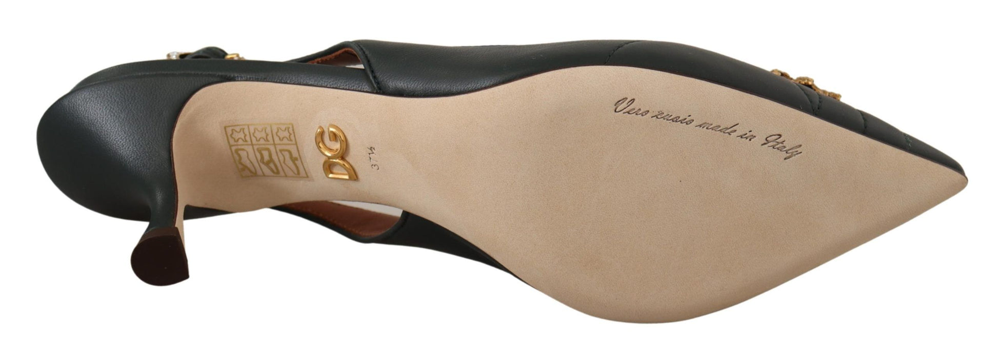 Devotion Leather Slingback Pumps - Elegant Green Heels
