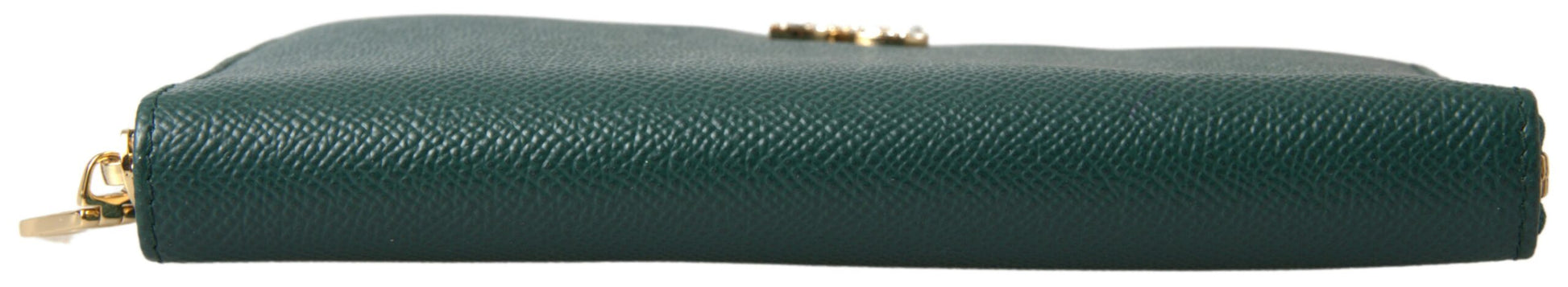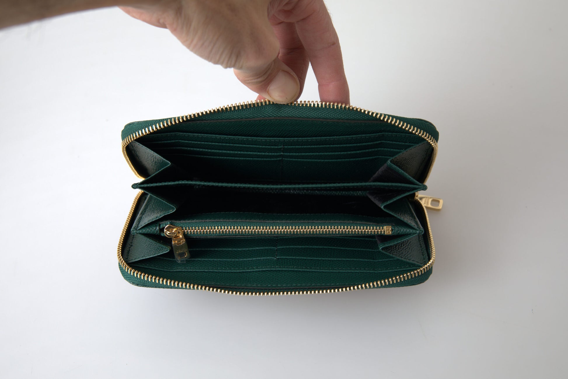 Unveil the essence of sophisticated style with the Emerald Elegance Continental Wallet by Dolce & Gabbana. This exquisite accessory, brand new with tags and in its original box, is a testament to luxury and functionality. The wallet’s deep green hue is elegantly complemented by a lustrous gold DG logo, exuding an air of opulence. Crafted in Italy, this wallet assures quality and durability, perfect for the discerning individual who appreciates the finer things in life. Keep your essentials organized while making a statement of unparalleled elegance.