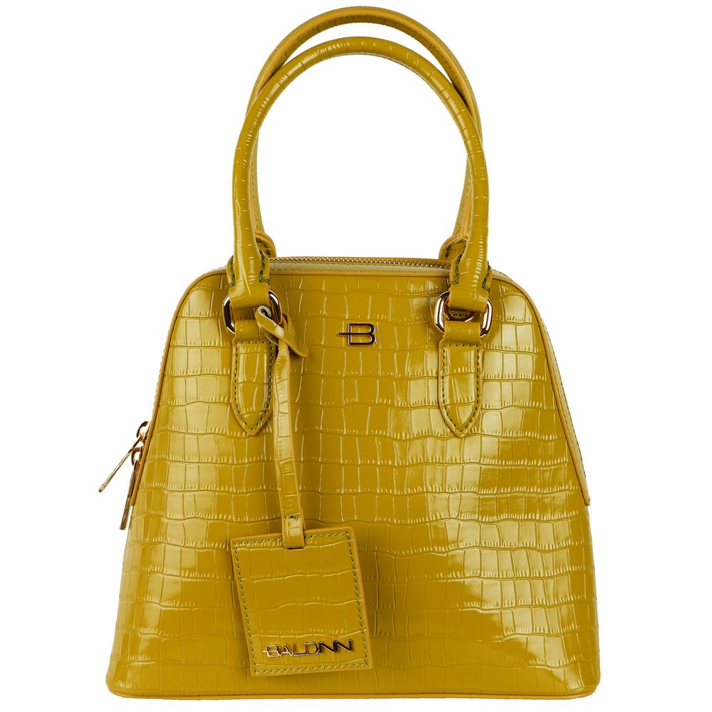 Immerse yourself in the luxurious embrace of the Baldinini Trend handbag, featuring a refined pistachio green calfskin with an exotic python print. Compact yet capacious, it comes with a smooth zip closure and is adorned with a polished metal logo, complemented by a chic leather tag. Perfect for adding a touch of sophistication to any ensemble.