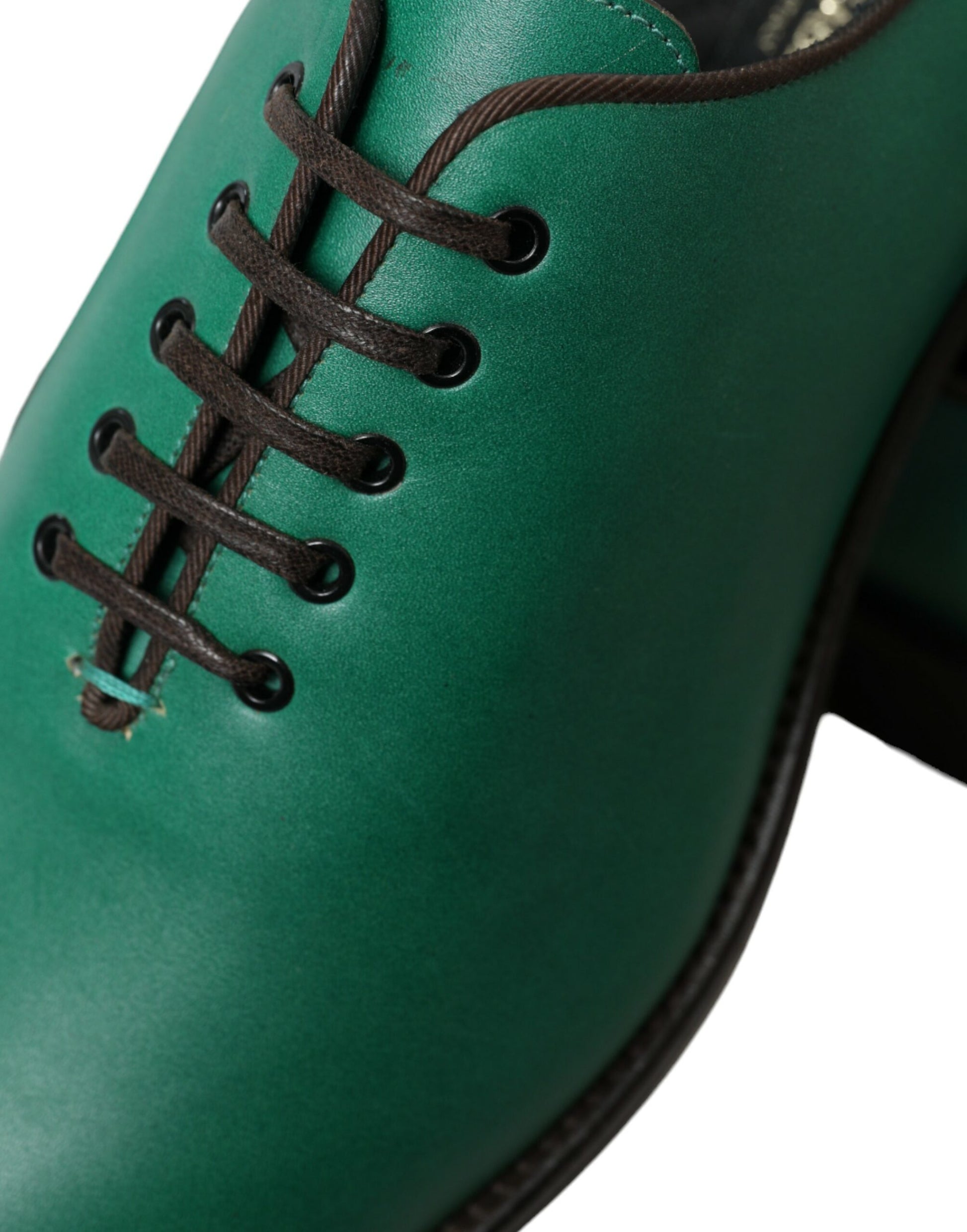 Unveil the epitome of sophistication with these Dolce & Gabbana men’s oxford dress shoes. With an air of elegance and a commitment to fine craftsmanship, these stunning green shoes are designed to complement your formal attire. Luxuriate in the comfort and style of premium leather, complemented by a classic lace-up closure and the subtle charm of logo details. Perfect for the discerning gentleman seeking a touch of luxury. Crafted in Italy, these shoes are a testament to world-renowned Italian artisanship.