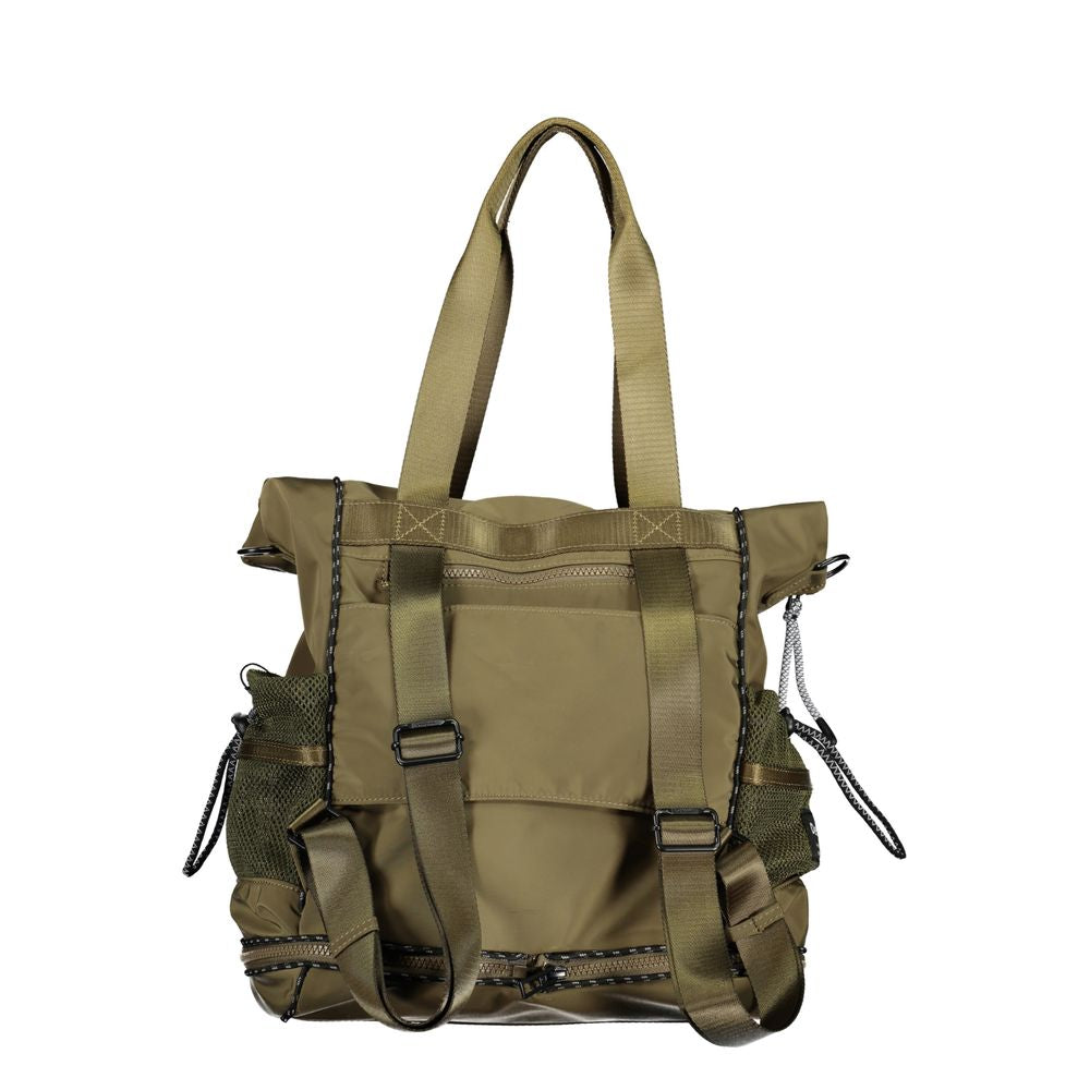 BAG 2 SHOULDER HANDLES, 1 ADJUSTABLE AND REMOVABLE SHOULDER STRAP, 1 REMOVABLE SHOULDER HANDLE, CONVERTIBLE INTO A BACKPACK WITH ADJUSTABLE STRAPS, 2 EXTERNAL POCKETS, 2 EXTERNAL SIDE POCKETS, 1 REMOVABLE EXTERNAL CLUTCH, 1 INTERNAL POCKET, INTERNAL T-DOOR POCKETS