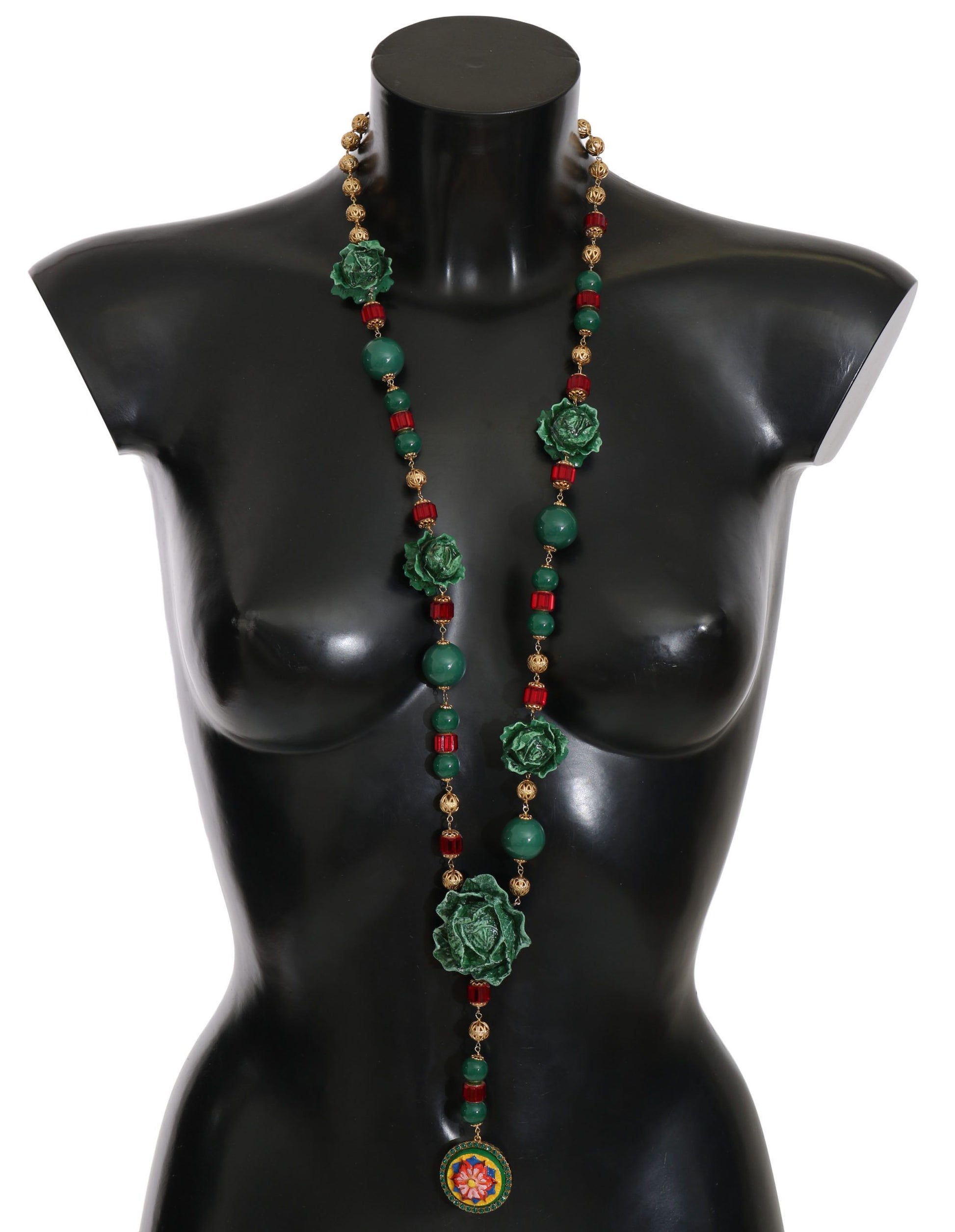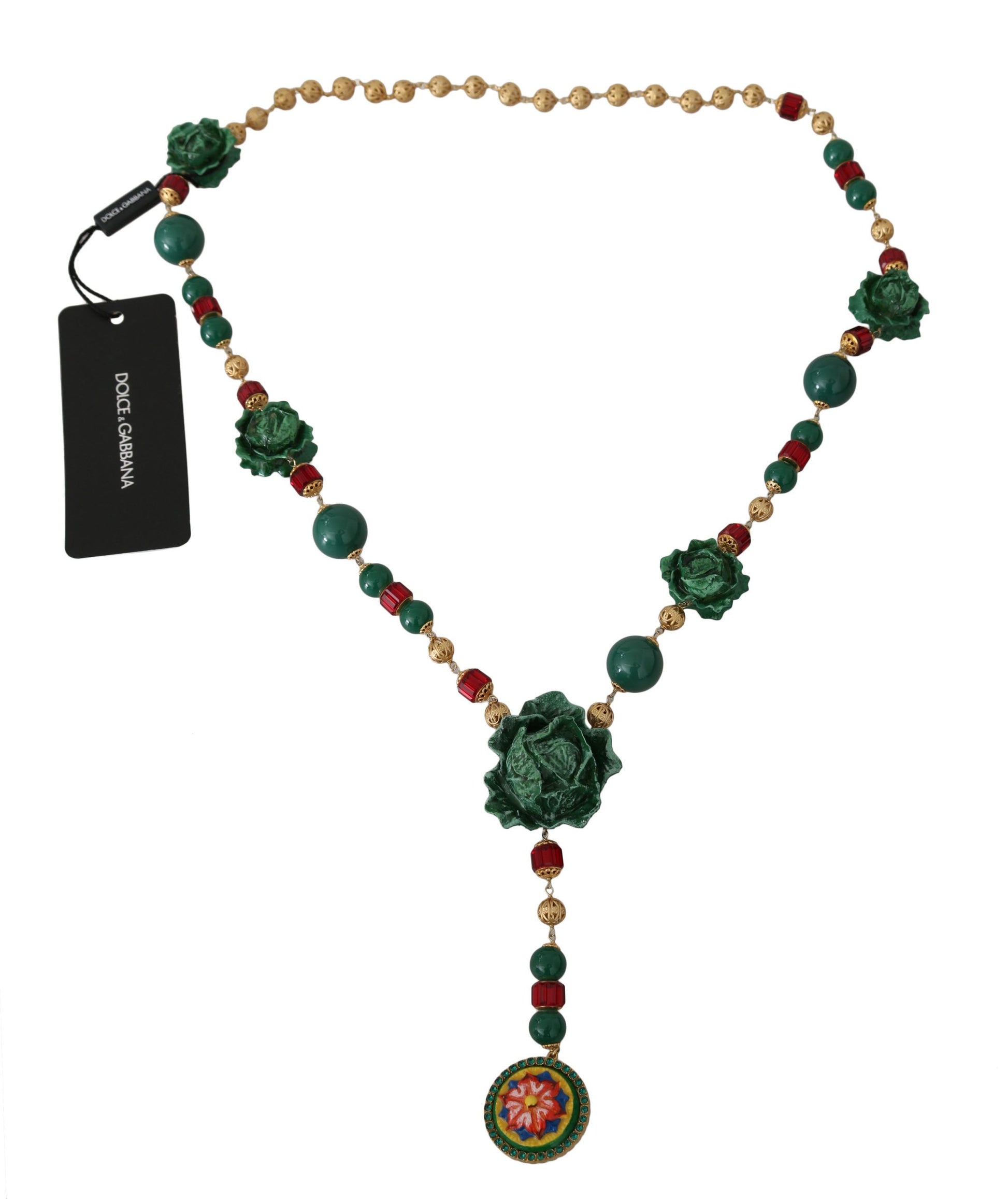 Enchant your ensemble with the mesmerizing charm of Dolce & Gabbana’s Sicily necklace. This exquisite piece captures the essence of luxury with its intricate ‘CAVOLO’ cabbage motif, skillfully crafted to lend an air of Italian sophistication to any attire. Adorn your neckline with a masterpiece that is as versatile as it is elegant, meticulously assembled from a medley of brass, crystals, glass, and resin to illuminate your presence.