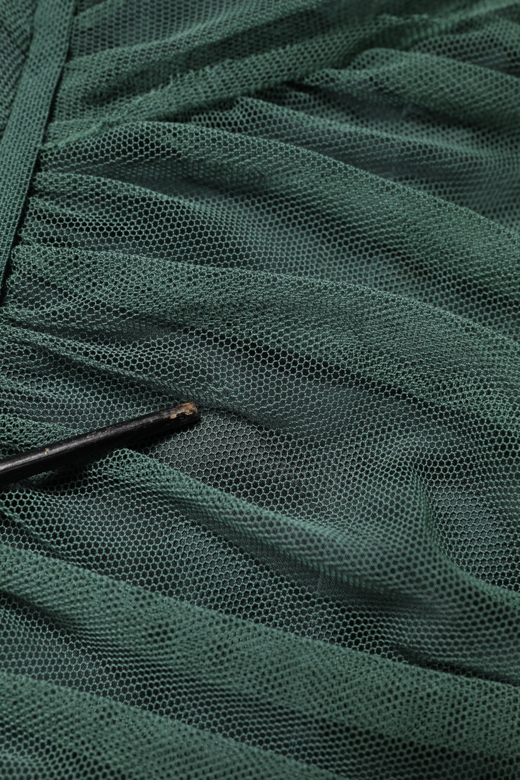 Gorgeous brand new with tags, 100% Authentic Dolce & Gabbana dress. This elegant green midi dress features a refined ruched silhouette crafted in delicate mesh, enhanced with a flattering V-neckline and sheer long sleeves. The design is finished with jewel-embellished shoulder accents, adding a touch of luxury and sophistication. A striking statement piece, perfect for formal occasions, evening events, or special gatherings, showcasing Dolce & Gabbana’s exceptional Italian craftsmanship..