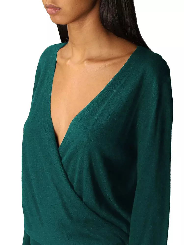 Experience the effortless elegance and comfort with our Silk Blend V-Neck Sweater, a luxurious addition to your wardrobe. Featuring a sophisticated crossed V-neck design, ribbed sleeves, and collar for a touch of texture, and delicate buttons on the sleeves for an exquisite finish.