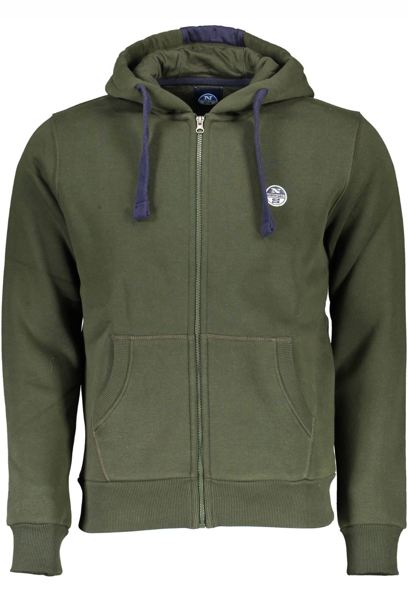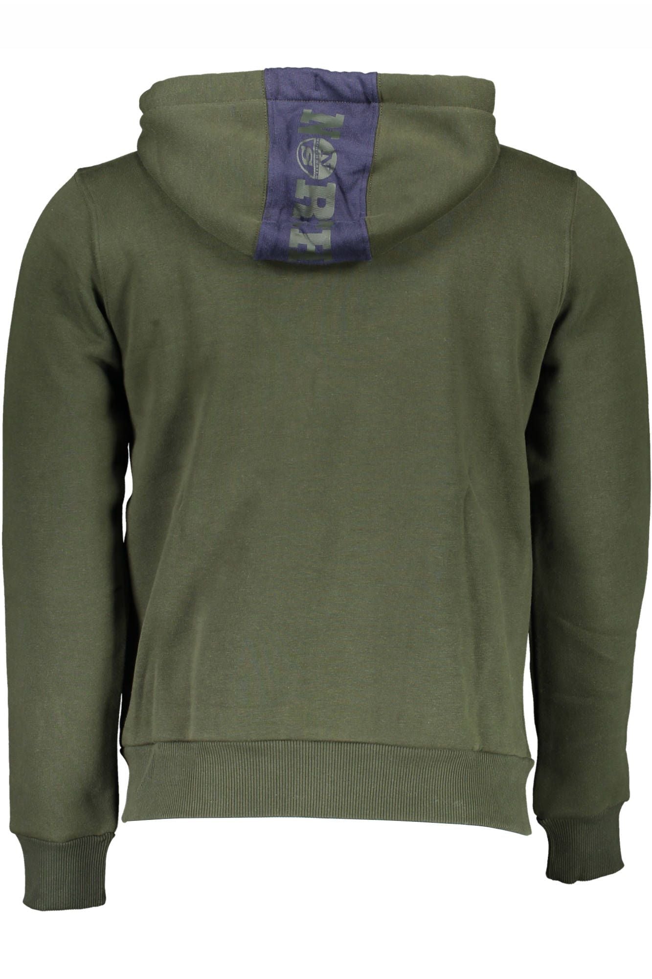 Long-sleeved sweatshirt with hood, 2 central pockets, contrasting details, zip, print, application, logo