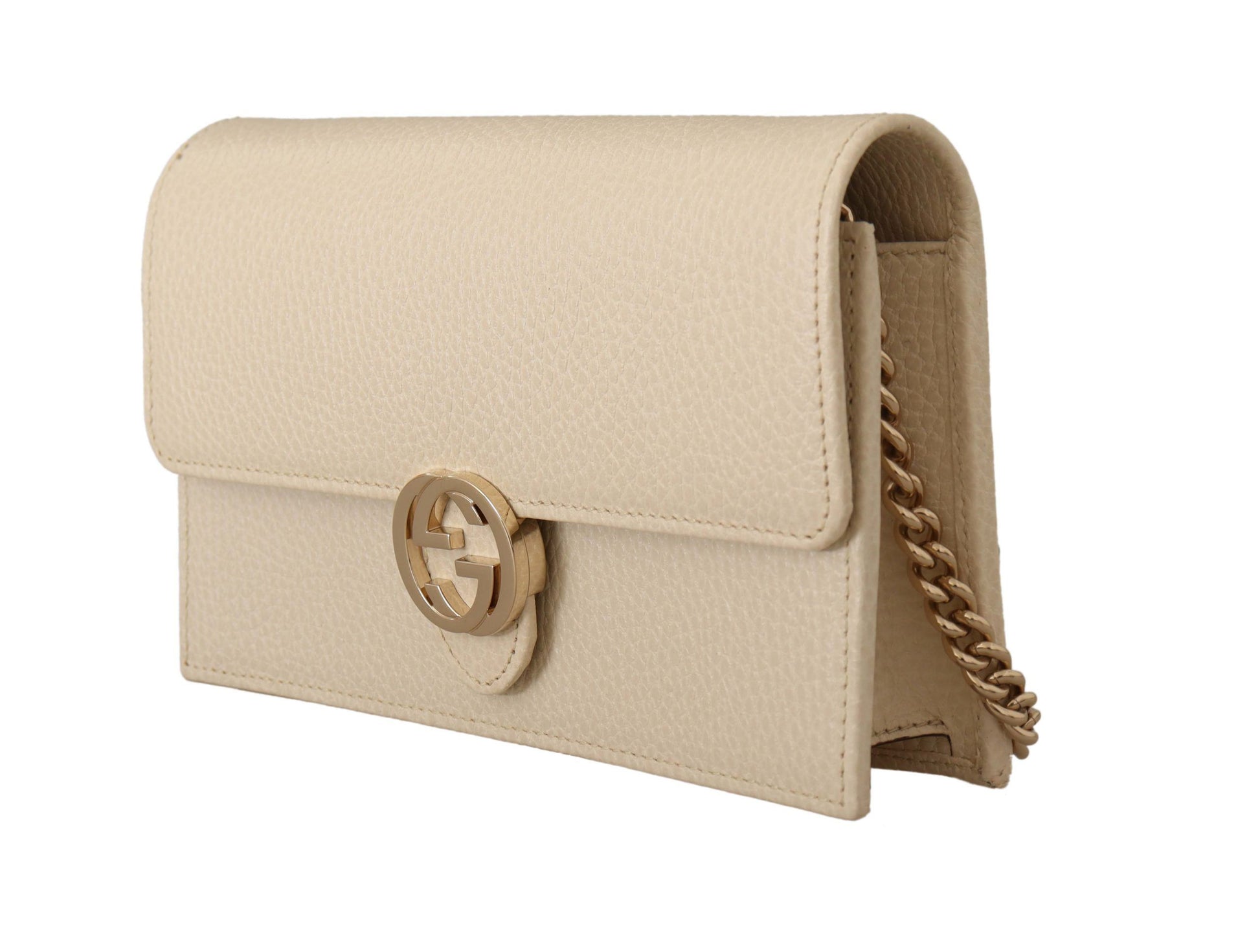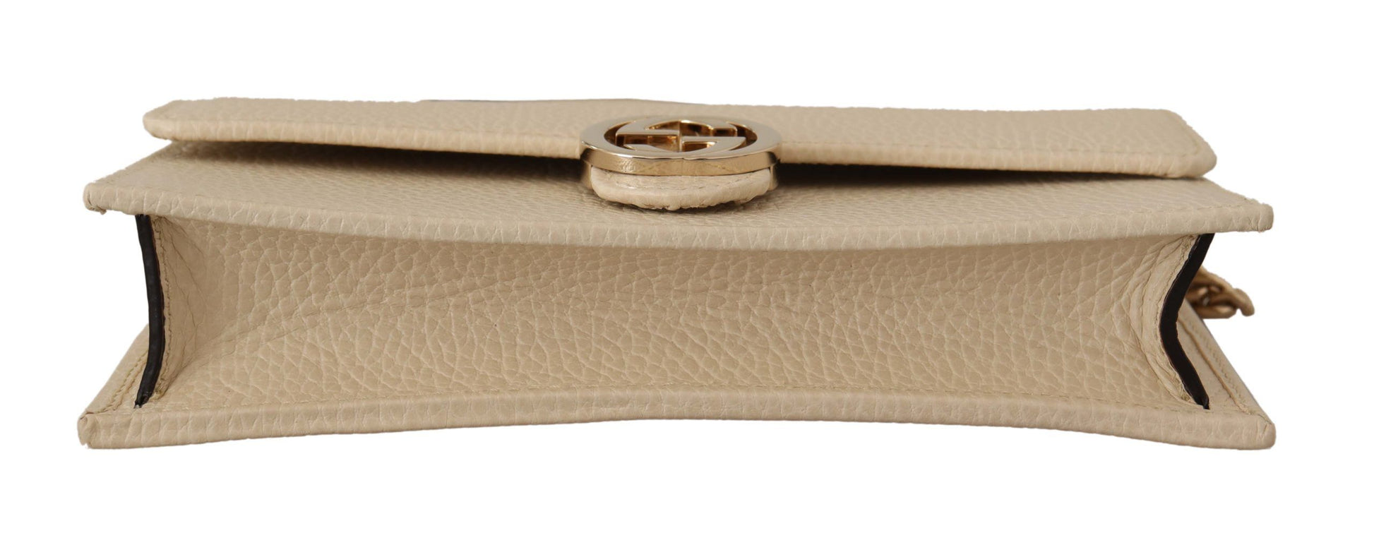 Stun the crowd with this exquisite, 100% authentic Gucci Shoulder Bag. Its elegant design features a top flap with the iconic interlocking GG snap closure, complemented by silver-toned metal hardware. The strap is a blend of chain and leather, offering versatility to wear it on your shoulder or as a crossbody bag. Inside, you’re equipped with a zip pocket and card slots for organized storage. The beige leather exudes timeless sophistication, making it the perfect addition to any luxury collection.