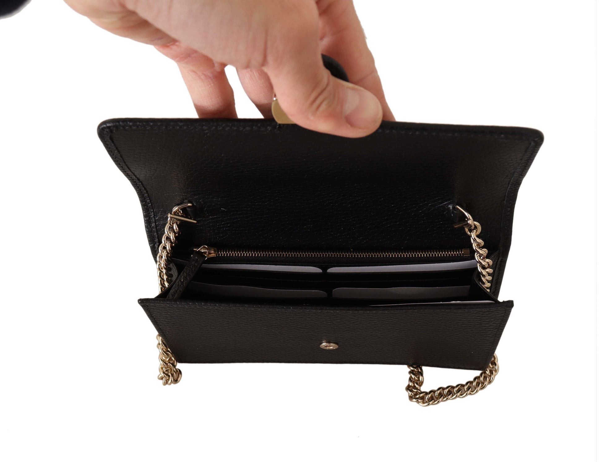 Gorgeous brand new with tags and box, 100% Authentic Gucci Shoulder Bag. Crafted from premium leather, this elegant accessory features a top flap with the iconic interlocking GG snap closure, adding a touch of luxury to your outfit. The silver toned metal hardware is complemented by a chic chain and leather strap, offering versatile wear as a shoulder or crossbody bag. Stay organized with ease thanks to the convenient internal zip pocket and card slots. Its sleek black color ensures it will be a timeless addition to your collection.
