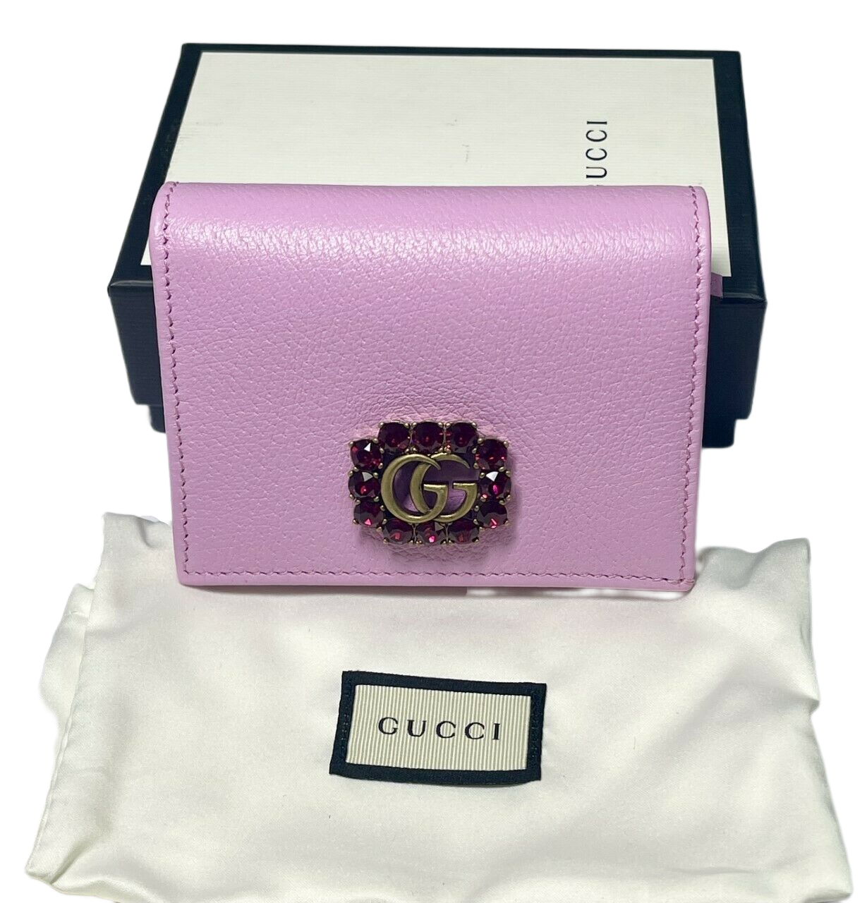 Gucci Marmont Women's Pink Leather Wallet w/Crystal Double G