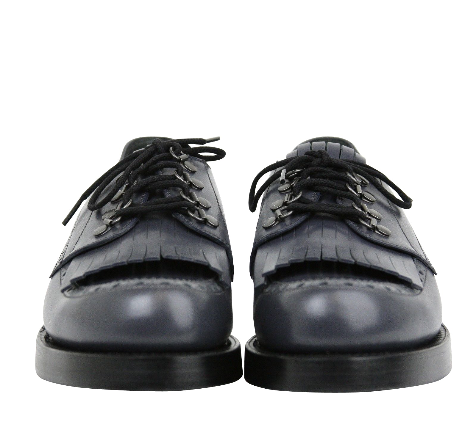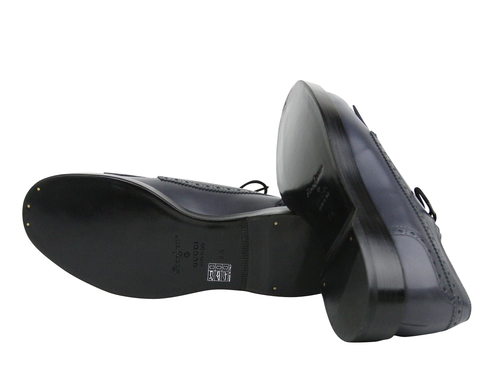 Gucci Men's Fringed Brogue Bluish Gray Leather Lace-up Shoes