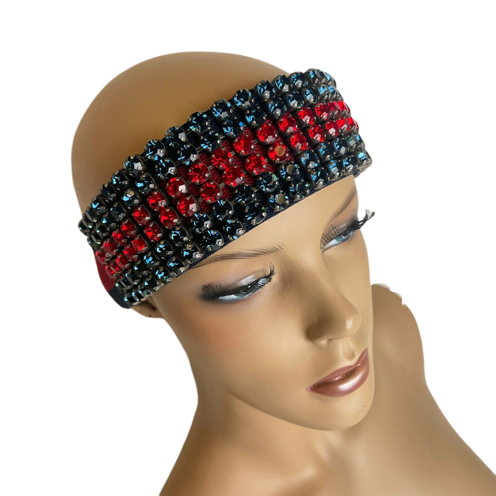Gucci Women's Blue/Red Web Elastic Headband with Crystals