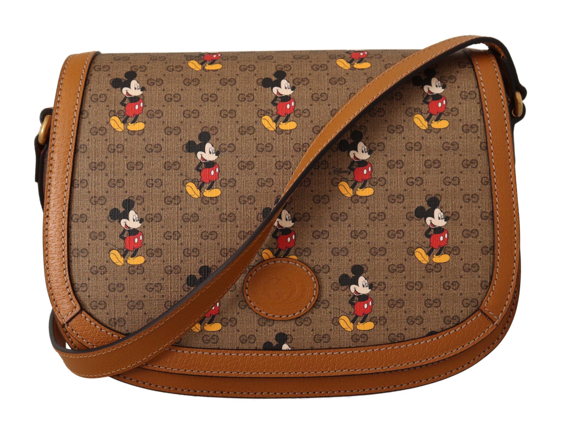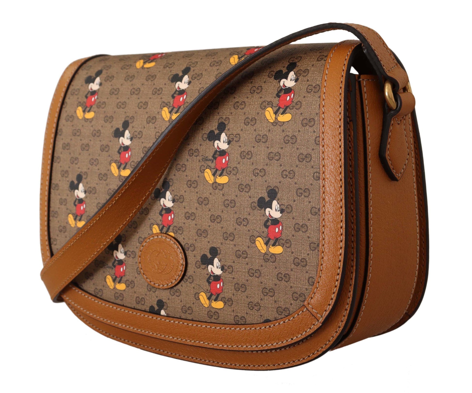 Embark on a magical style journey with our enchanting Disney GG Supreme Shoulder Bag by Gucci. This gorgeous, brand new shoulder bag comes with tags and its original box, ensuring it arrives in impeccable condition. Crafted from high-quality leather, the bag features a whimsical multicolor design that captures the imagination. Its compact size is perfect for daily essentials, with dimensions that measure 25cm in width, 18cm in height, and 9cm in depth. A secure flap snap closure keeps your belongings safe as you go about your day.