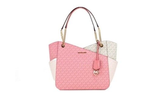 Style: Michael Kors Jet Set Large X Cross Chain Shoulder Tote Bag (Tea Rose Multi Signature)
