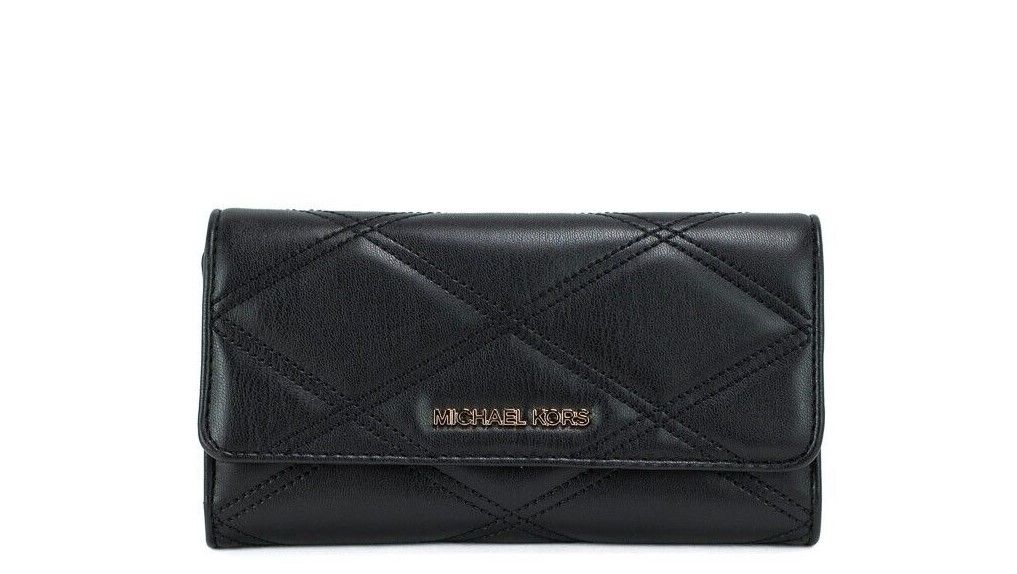 Style: Michael Kors Jet Set Travel Large Quilted Trifold Wallet (Black)