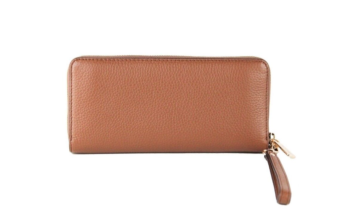 Features: Michael Kors Front Logo Plate, 5.5" Detachable Wristlet Strap, 16 Card Slots, 1 ID Window, 1 Zip Coin Compartment, 5 Full Length Bill Slots