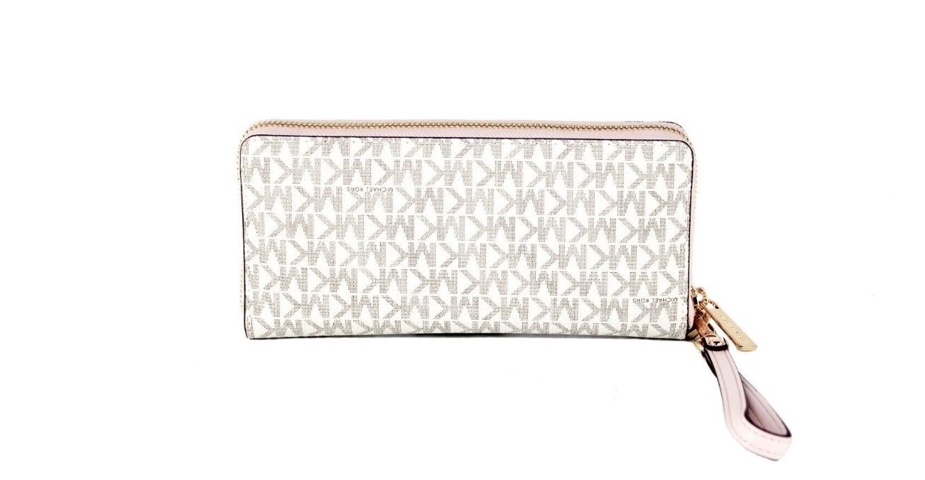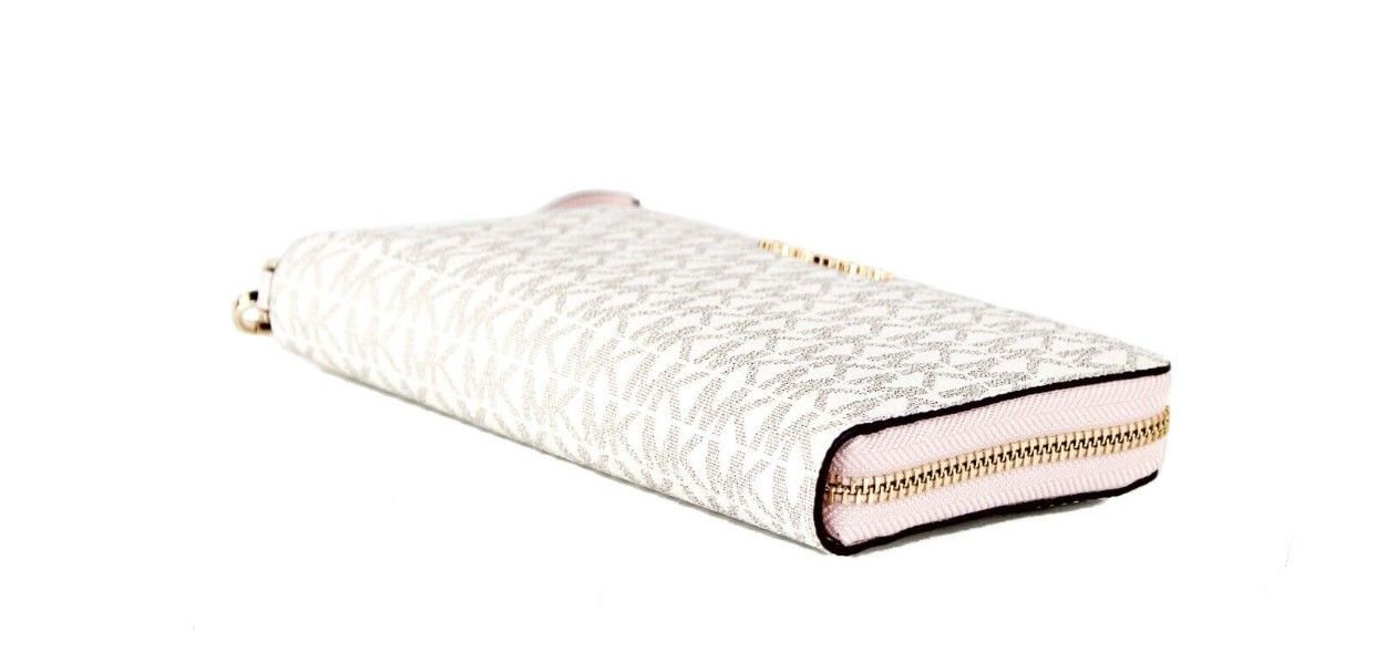 Style: Michael Kors Jet Set Travel Large Continental Clutch Wristlet Wallet (Vanilla Signature/Powder Blush)