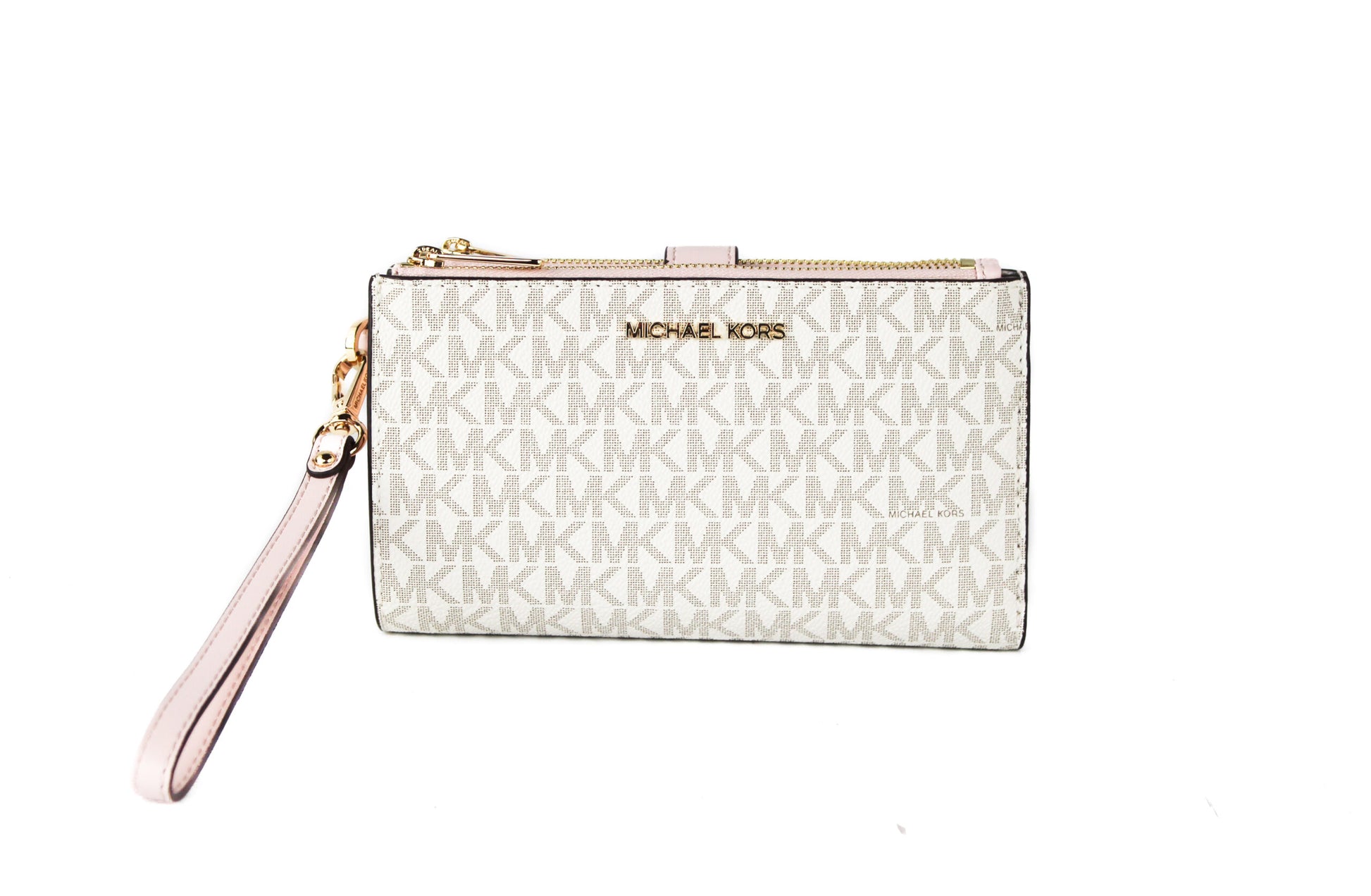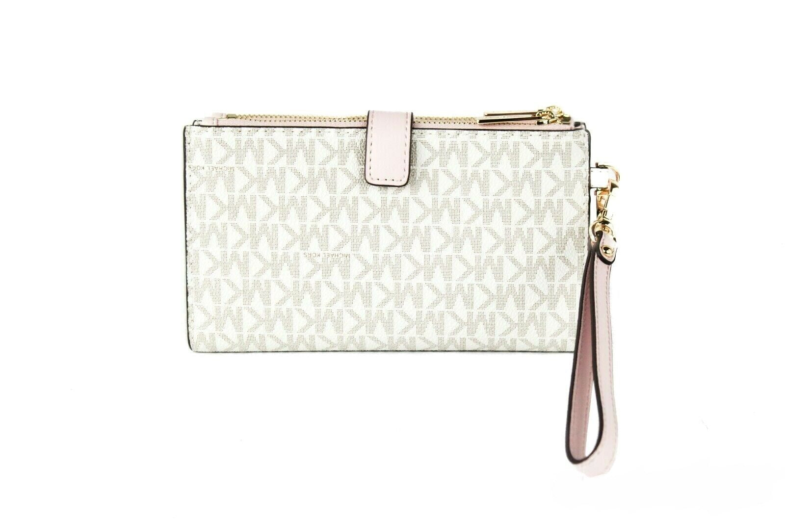 Jet Set Travel Leather Logo Large Double Zip Wristlet Wallet Vanilla Powder Blush