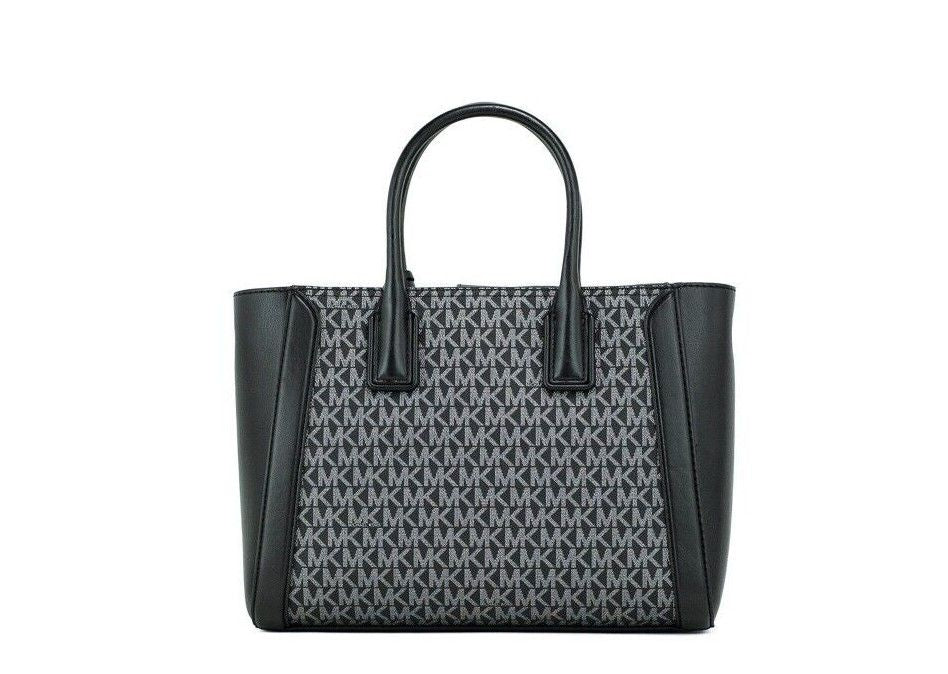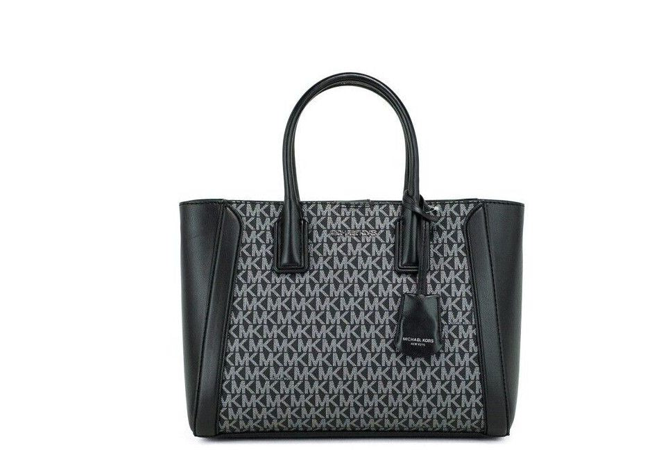 Style: Michael Kors Kali Medium Satchel with iPad Case (Black/Silver Signature)